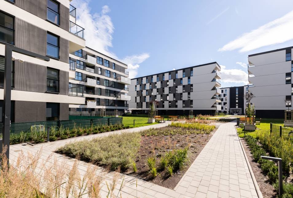 W ramach zrealizowanego I etapu inwestycji zostały oddane do użytku cztery budynki o prostych bryłach i elewacjach utrzymanych w bieli, szarości i ciepłych odcieniach brązu. Oferta mieszkaniowa została dopasowana do zróżnicowanych potrzeb mieszkańców. W czterech budynkach powstały 202 mieszkania o pełnej gamie metraży – od 36 do 90 mkw. i układach od jednego do czterech pokoi. W pozostałej przestrzeni zaprojektowano lokale usługowe, hale garażowe wraz z nowoczesnym systemem parkowania na platformach i przestronne komórki lokatorskie.