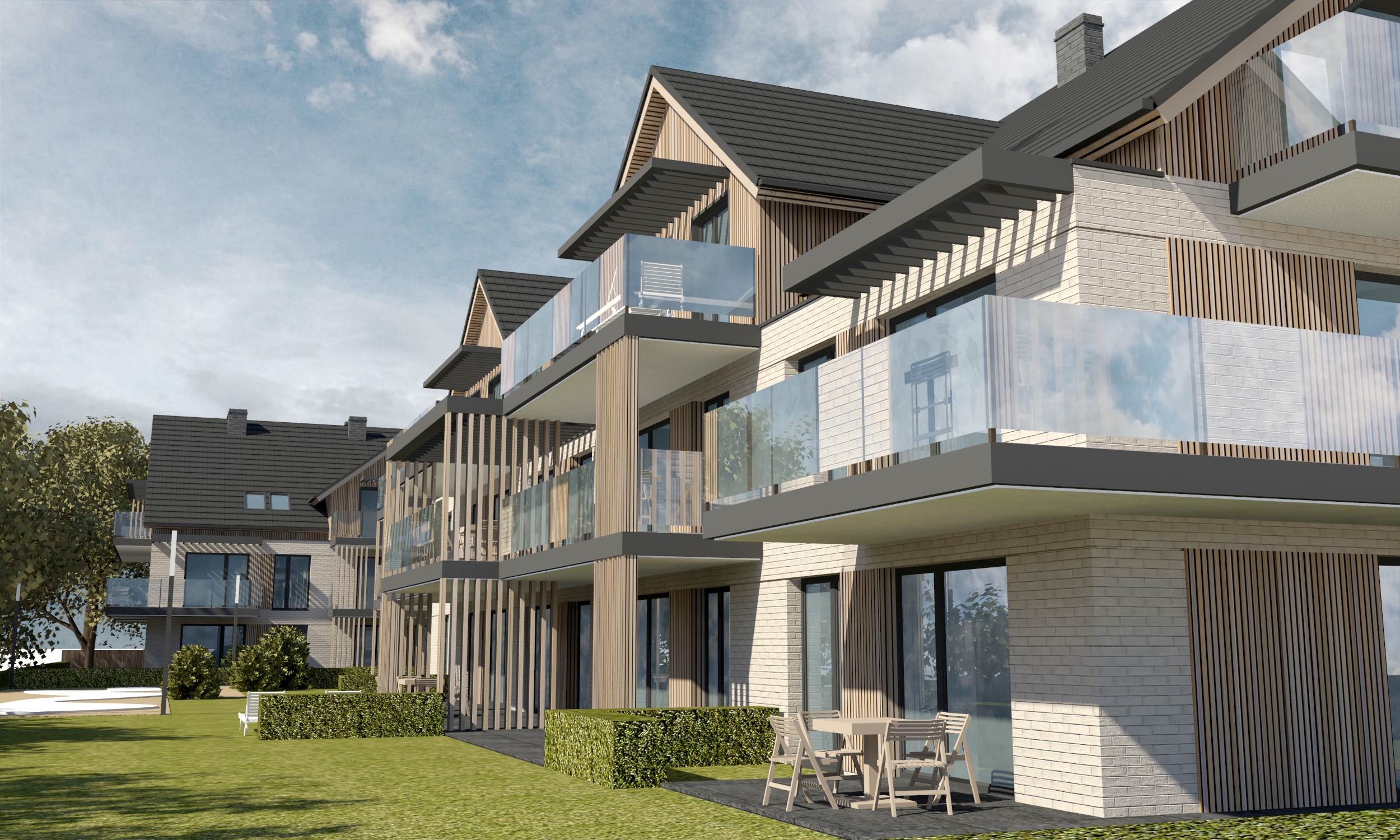 Nasza inwestycja, to 26 ekskluzywnych apartamentów o metrażu od 25 do 50 metrów oddalonych raptem 4 minuty drogi do morza i najpiękniejszych zachodniopomorskich plaż. Funkcjonalne projekty apartamentów pozwalają na wygodne i atrakcyjne aranżacje przestrzeni. Szerokie tarasy oraz otoczenie sosnowych drzew będą okazją do pożądanego wypoczynku. Każdy z apartamentów posiada minimum 1, 2 lub 3 pokoje, aneks kuchenny oraz łazienkę. Bez wątpienia bardzo dużym atutem tej inwestycji i zakupu apartamentu są tarasy, każdy lokal na parterze posiada taras na poziomie 17m2 a każdy apartament na piętrze posiada taras od 12 do 18m2.