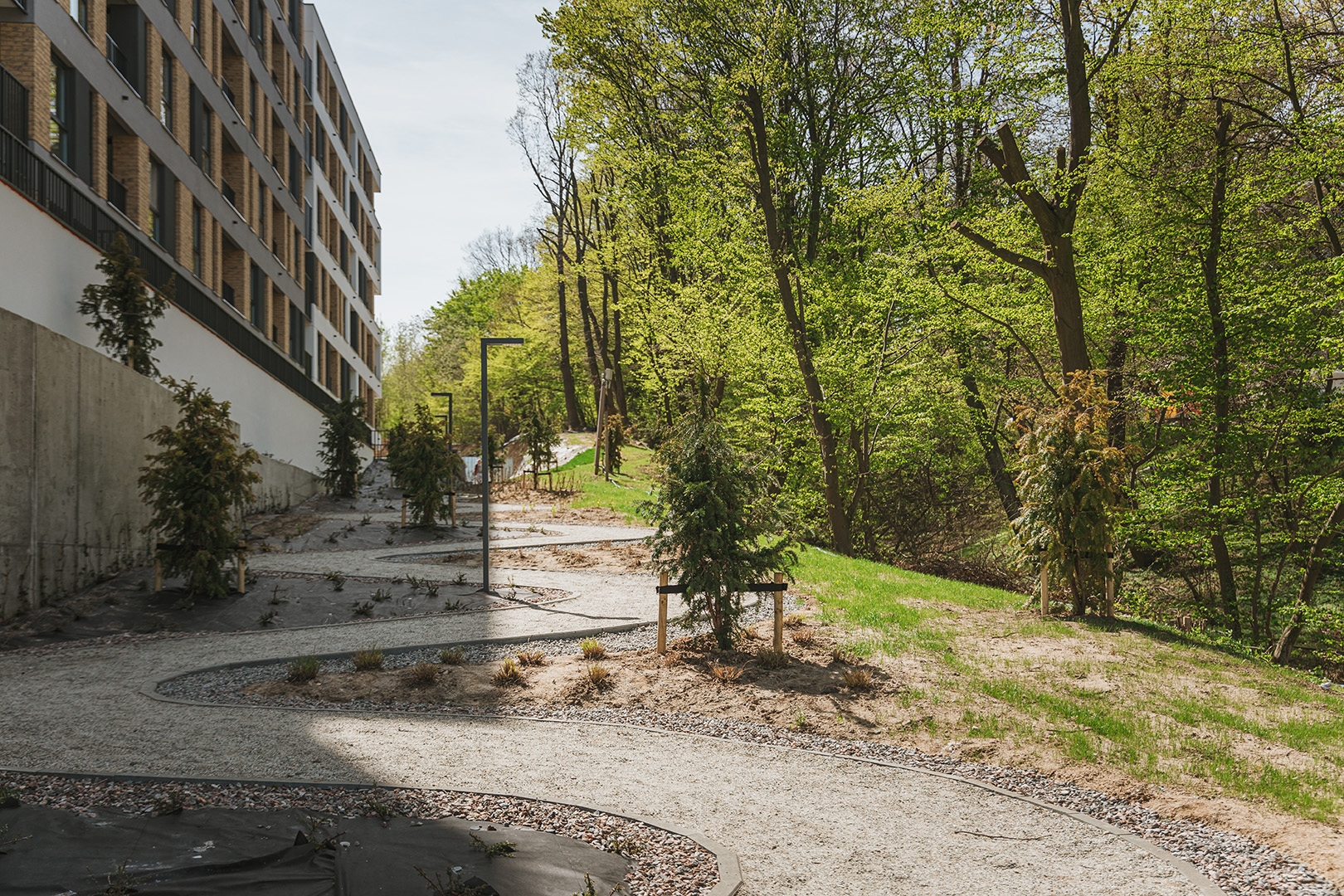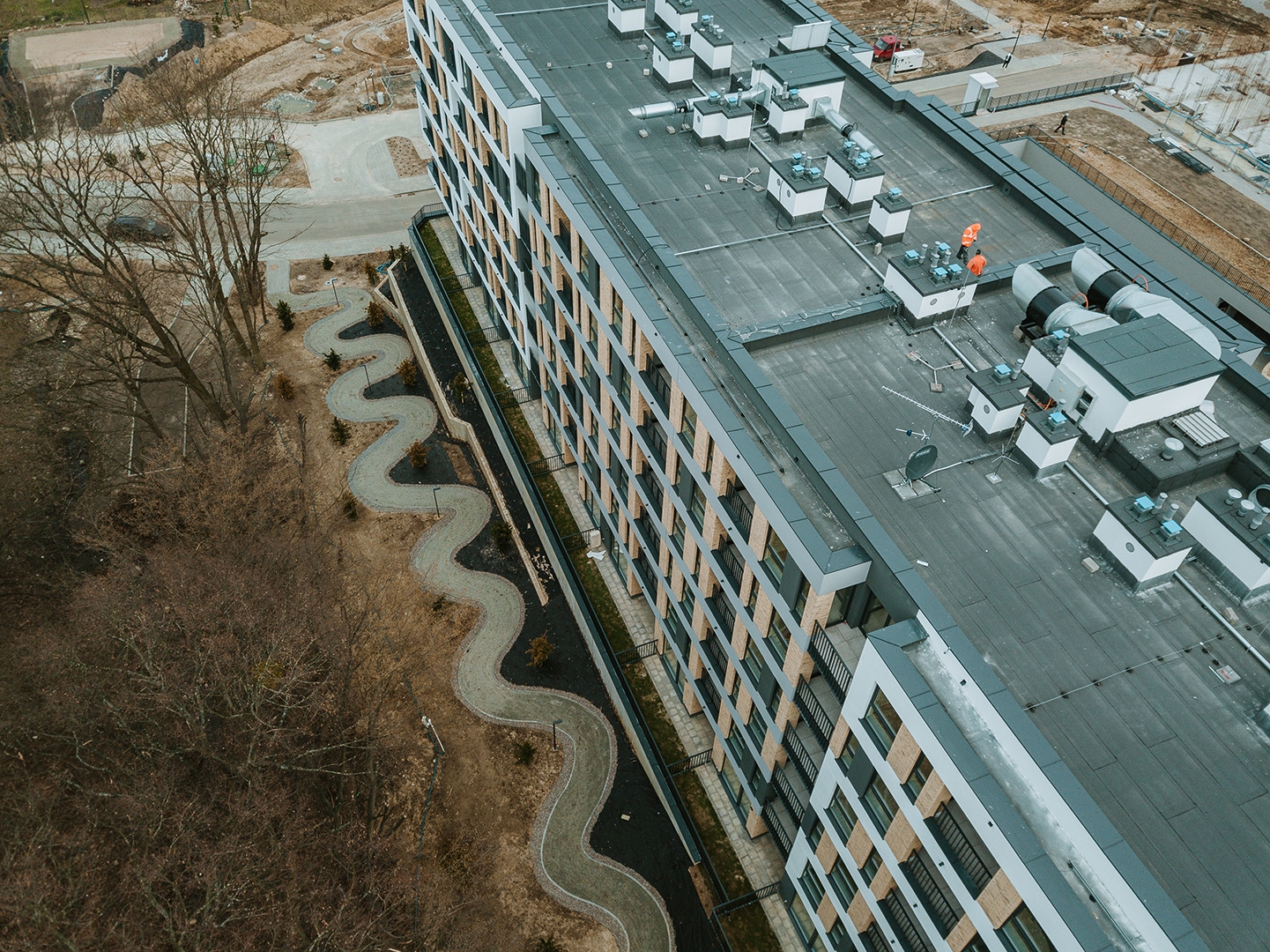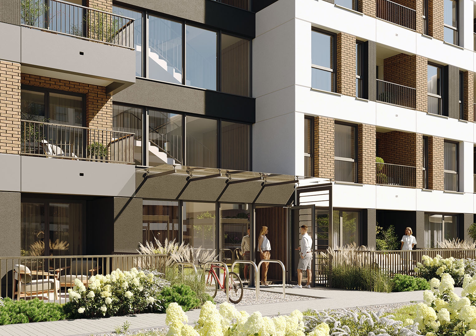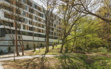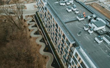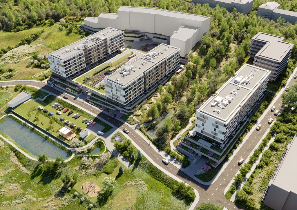 Rozległe tereny zielone są zaplanowane i zorganizowane do użytku mieszkańców. Dodatkowym atutem nieruchomości jest wydzielona strefa rekreacyjna z placem zabaw i grillem z dala od okien. Dla fanów sportu dostępna jest również zewnętrzna siłownia i nadzorowana przechowalnia rowerów.
