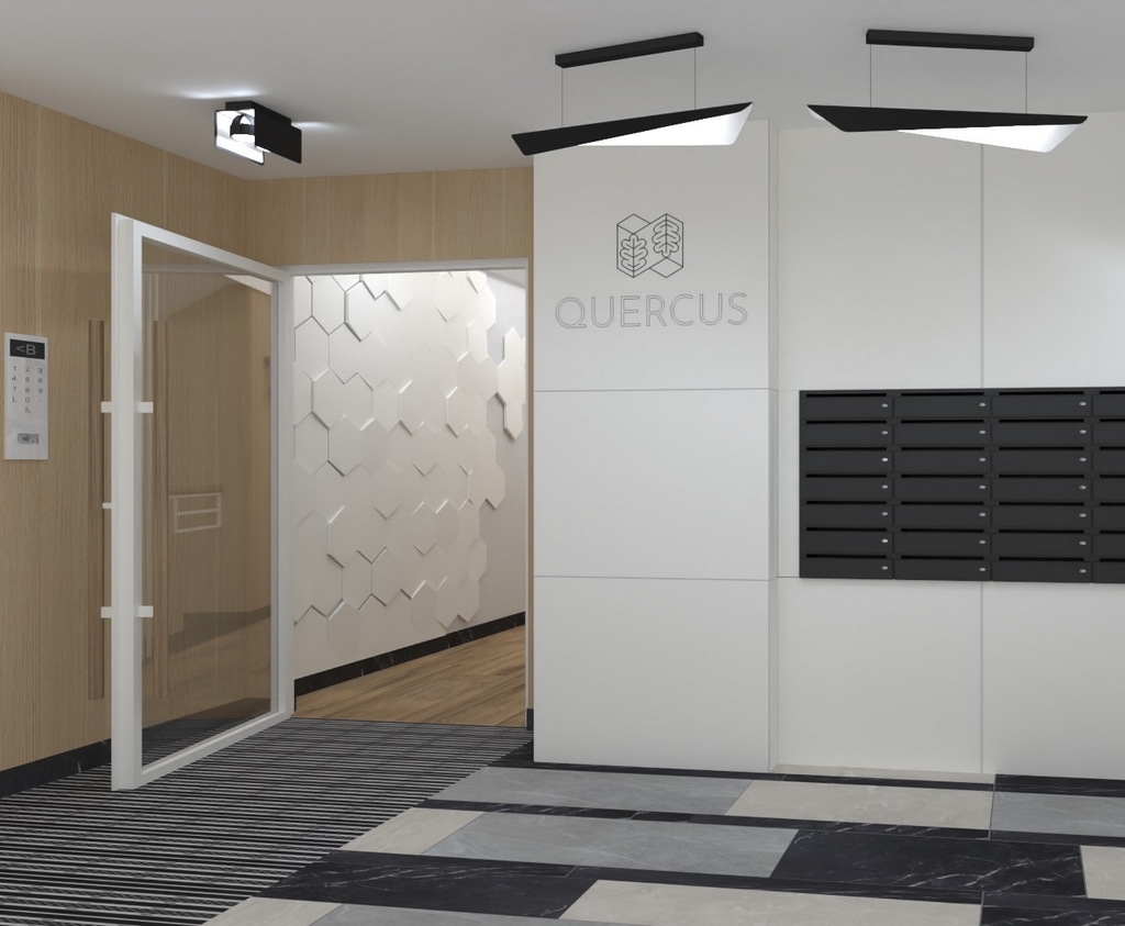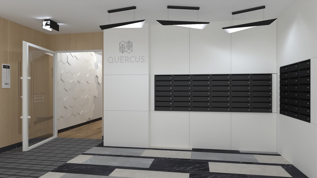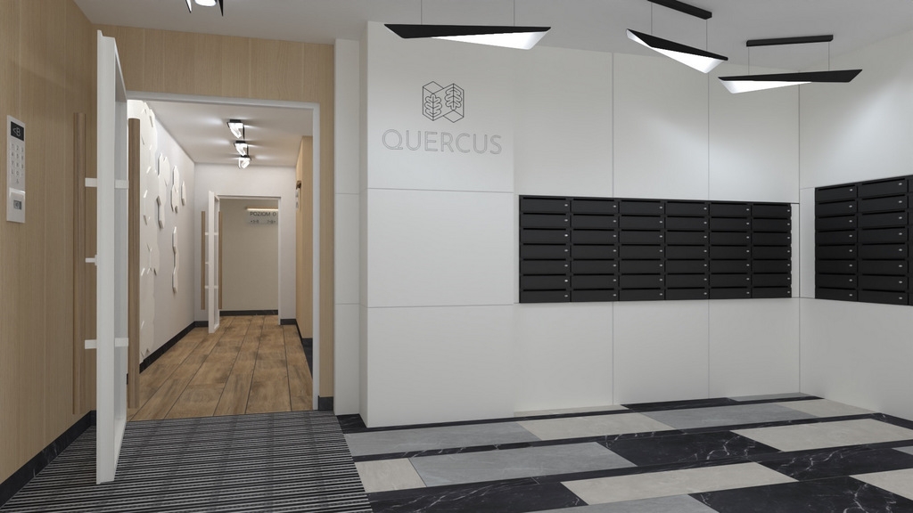 Tworząc osiedle QUERCUS zadbano o każdy szczegół przy wykończeniu zarówno przestrzeni publicznych, jak i mieszkalnych. Pokoje są starannie zaplanowane z myślą o funkcjonalności pomieszczeń. Są idealne dla singli, młodych rodzin lub jako inwestycja. Ze względów bezpieczeństwa w każdym apartamencie umieszczony jest wideofon. Dla poprawy komfortu mieszkania - ścianki działowe w pokojach wykonane są z cegły, co pozytywnie wpływa na akustykę pomieszczeń. Przeszklone balkony i duże okna zapewniają odpowiednią ilość światła. Mieszkania na pierwszym piętrze posiadają zielone ogródki. Przeszklone schody wnoszą naturalne światło, a ich konstrukcja w systemie ciepłej zabudowy ogranicza zużycie energii. Układ klatek wyróżnia się dopracowanym, indywidualnym designem oraz wysoką jakością użytych materiałów.