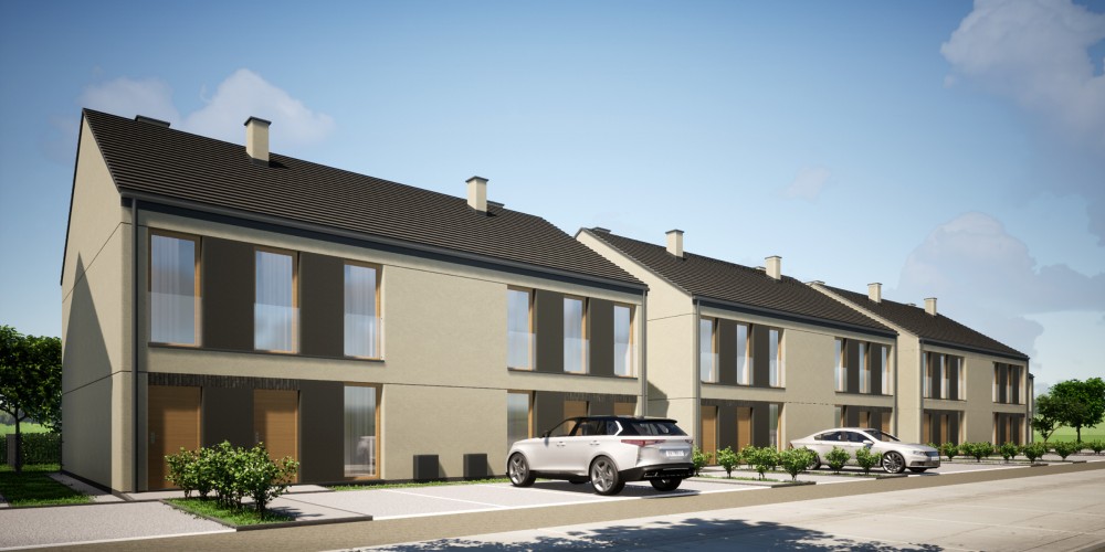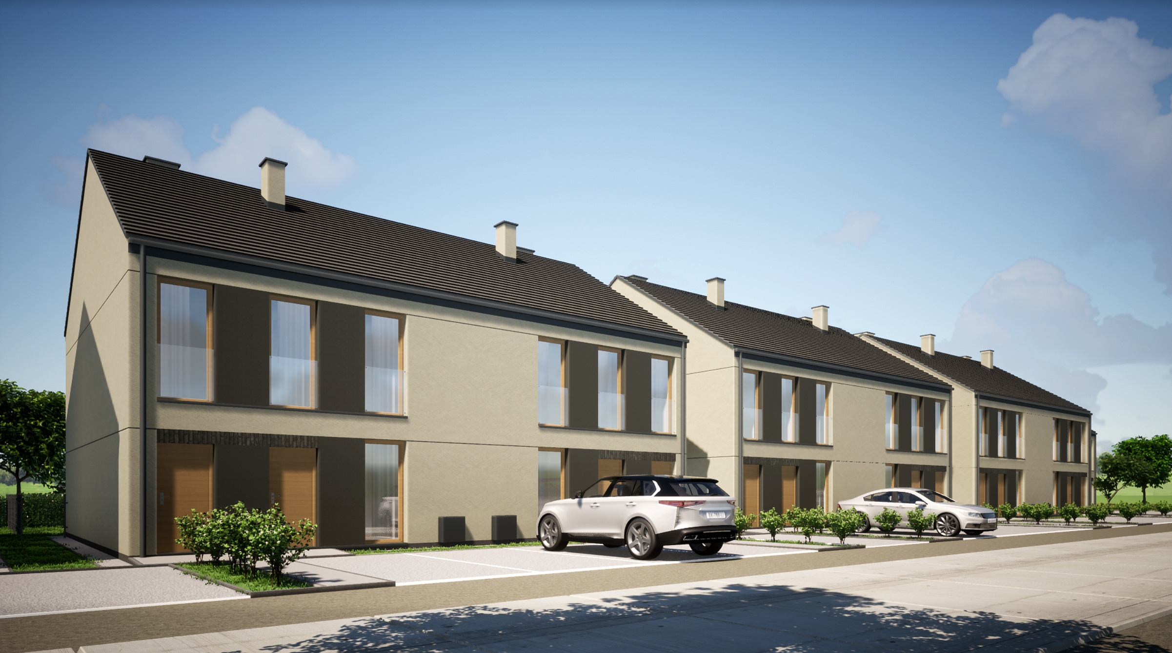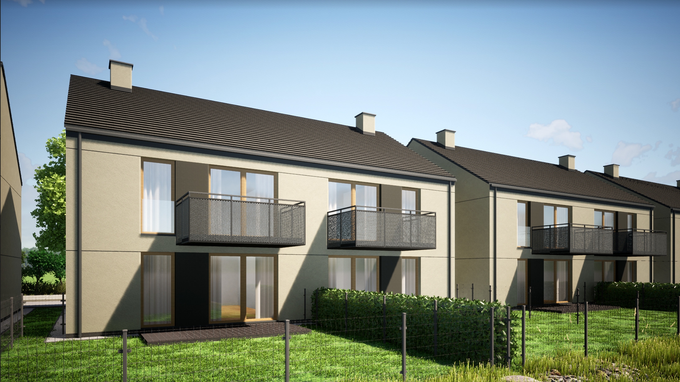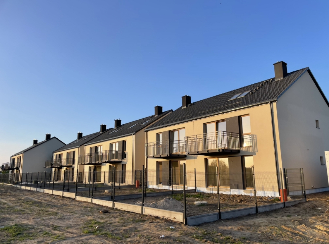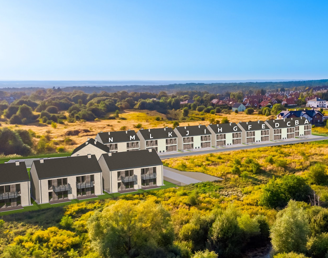W pierwszym etapie powstanie 8 budynków 2-lokalowych, łącznie 16 mieszkań o powierzchni od 61,62m2 (lokale na parterze) do 69,10m2 z możliwością powiększenia do co najmniej 94,10m2 (lokale na piętrze).Wejście na poddasze całkowicie bezkolizyjne, w klatce schodowej nad schodami prowadzącymi do lokalu. Ściany między lokalami podwójne. Lokale na parterze z ogródkami, lokale na piętrze z balkonami i poddaszem (w części bez skosów ok. 25m2) do wyłącznego użytkowania. Do każdego lokalu po dwa miejsca parkingowe. Obecnie w sprzedaży lokale w budynkach E, F, G oraz H. Wkrótce rozpoczęcie sprzedaży lokali w budynkach I oraz J.