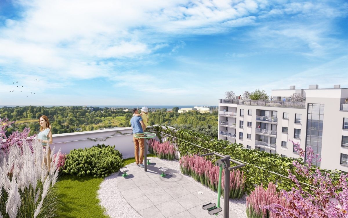 - Na dachu każdego z budynków będzie wspólna zielona strefa rekreacyjna,