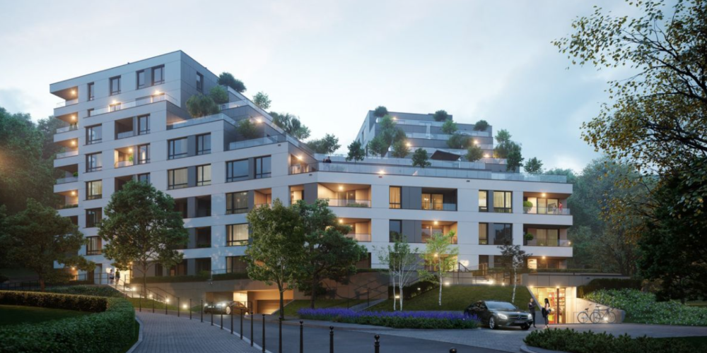 Osiedle zostało przemyślane tak, aby mimo swej nowoczesności i luksusowości, funkcjonowało w pełnej symbiozie i harmonii z pięknym otoczeniem. Budynek idealnie wkomponowuje się zielony pagórek. Dzięki ukształtowaniu bryły w literę „V” mieszkania mogą cieszyć się zarówno dobrym doświetleniem jak i pięknym krajobrazem. Choć prosty i modernistyczny, zaskakuje nieoczywistymi rozwiązaniami, takimi jak kaskadowe ułożenie poziomów oraz dużymi, ozdobionymi roślinnością tarasami.