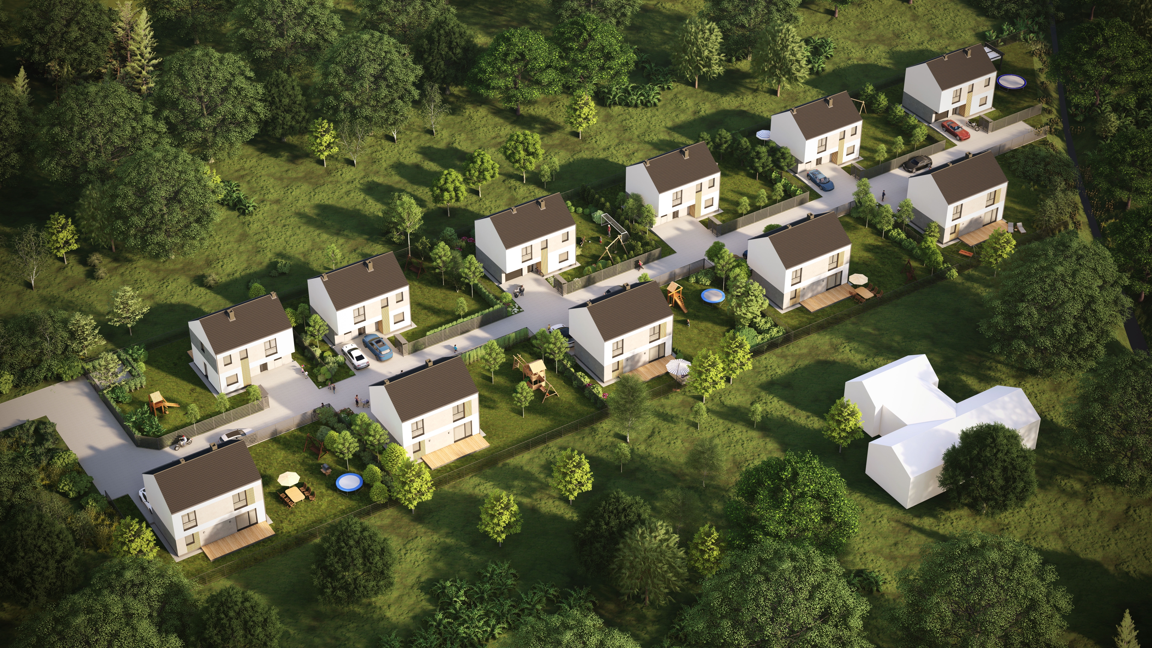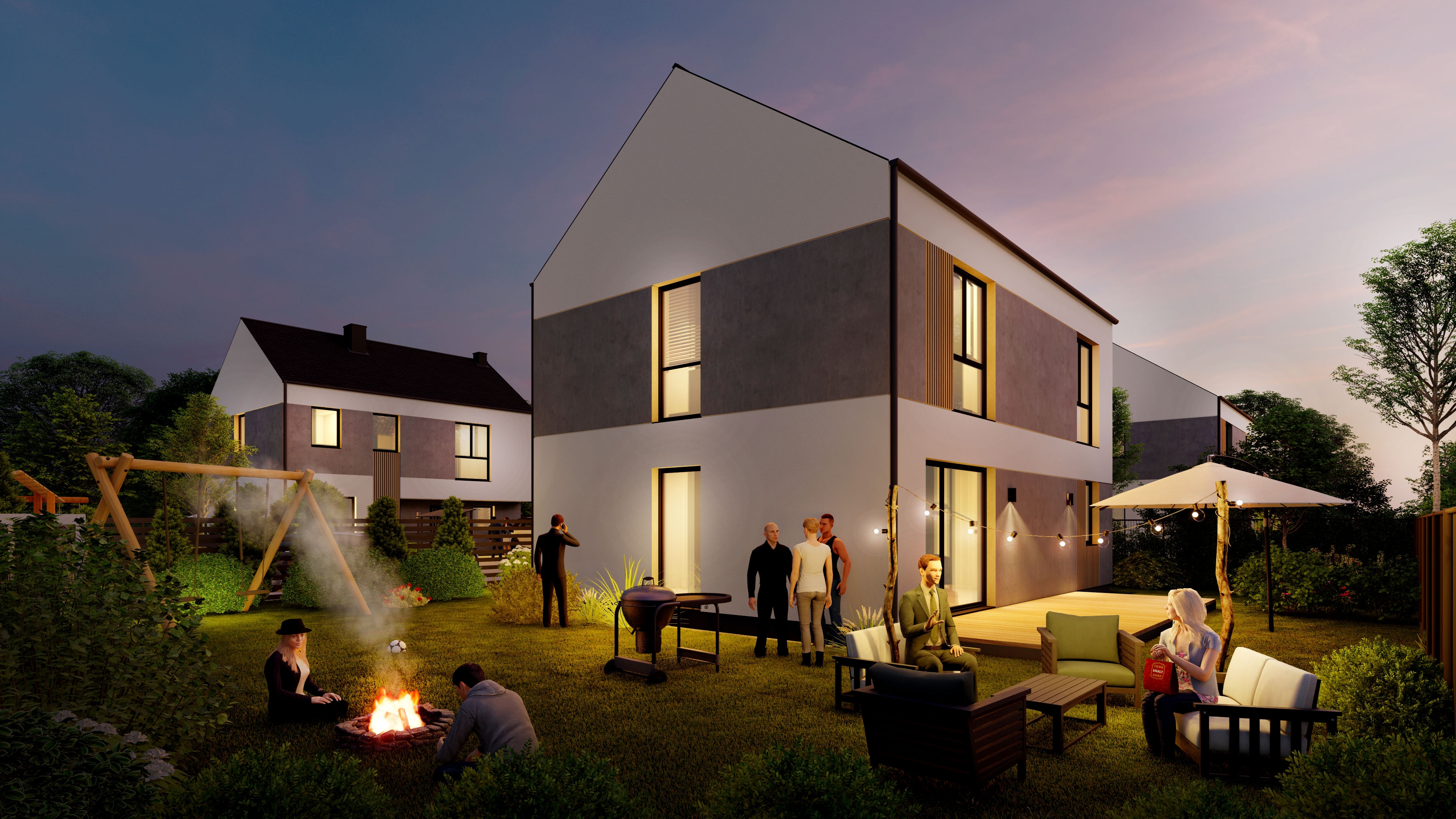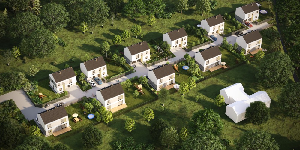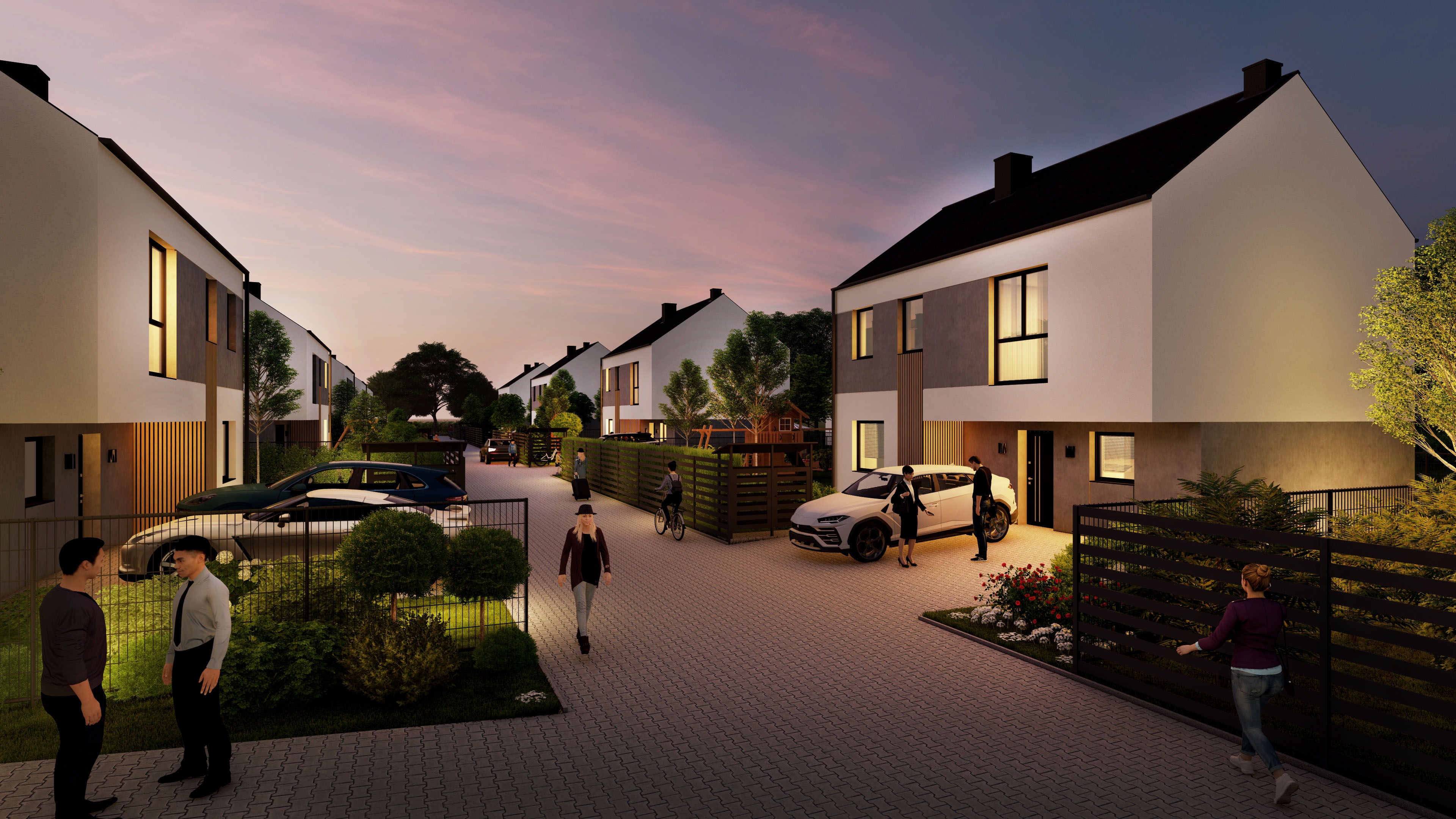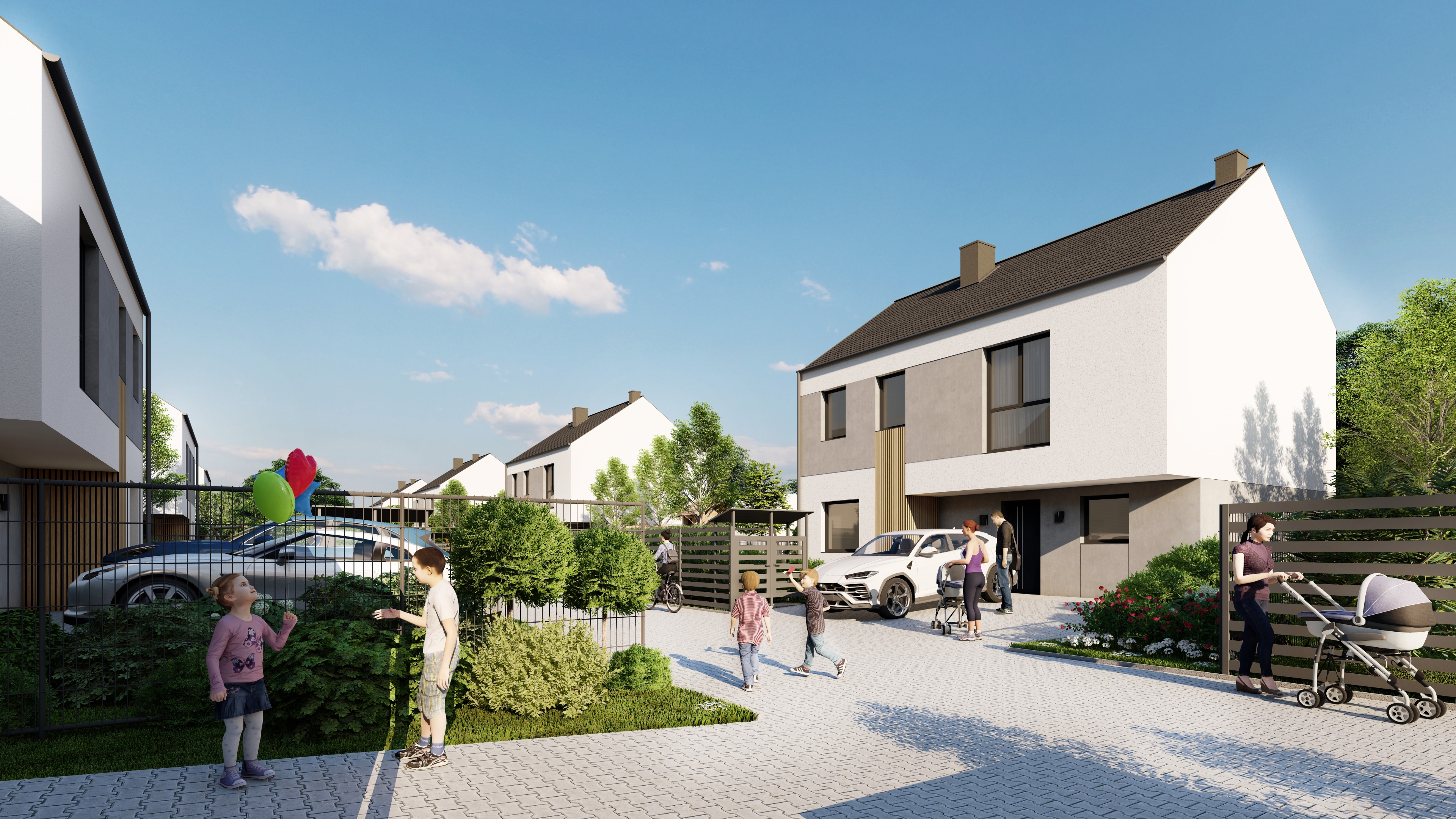 Inwestycja składa się z 11 domów wolnostojących. Każdy posiadać będzie własny ogrodzony duży ogród. Powstaną dwa typy domów