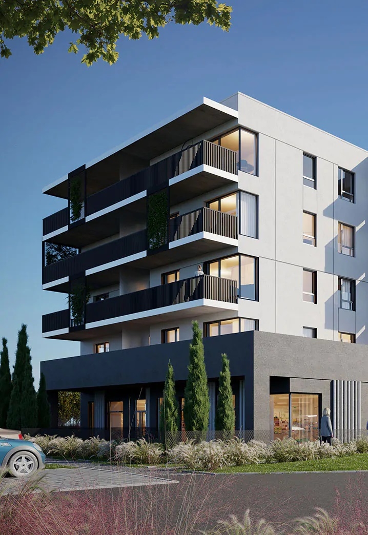 Dla wygody przyszłych właścicieli i ich klientów, zaplanowaliśmy dedykowane miejsca parkingowe przy lokalach handlowo-usługowych.