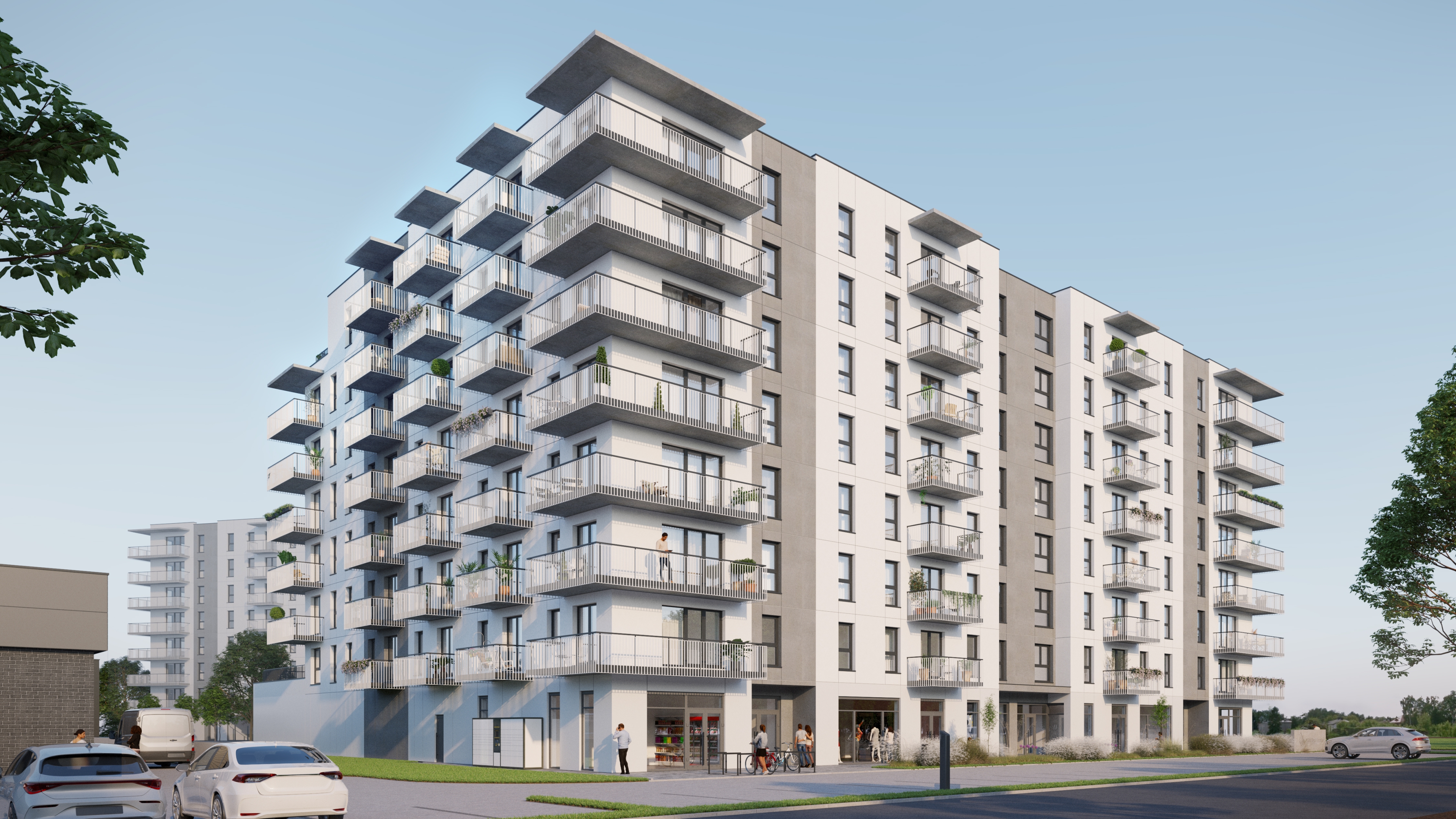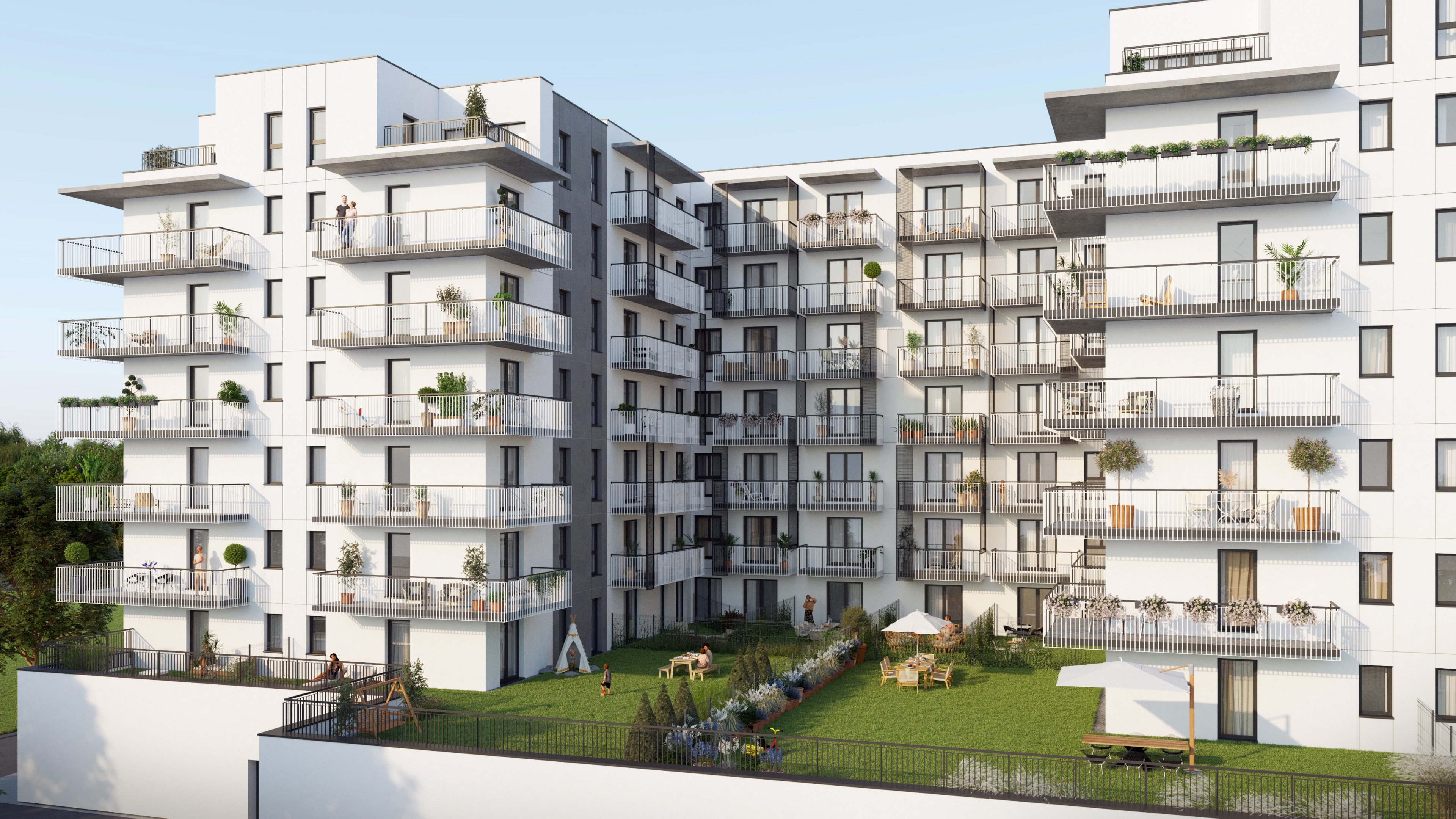 Dzielnica Olimpijska znajdują się mieszkania 1,2,3,4-pokojowe oraz wyjątkowe 4-5 pokojowe apartamenty na ostatnim, VII piętrze, gdzie wysokość pomieszczeń będzie wynosiła aż 2,8 m. Każdy z lokali posiada duży balkon lub ogródek.