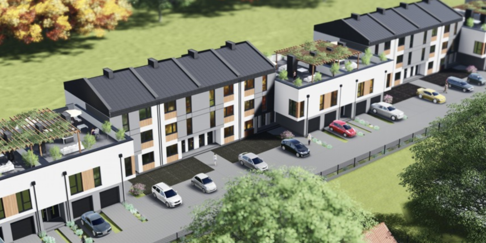 - mieszkania parterowe z dużym ogródkiem i garażem. Mieszkania są 3 pokojowe. Ogródki mają powierzchnię około 80 m2.
