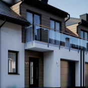 Balustrady zewnętrzne tarasów ze stali, malowane proszkowo.