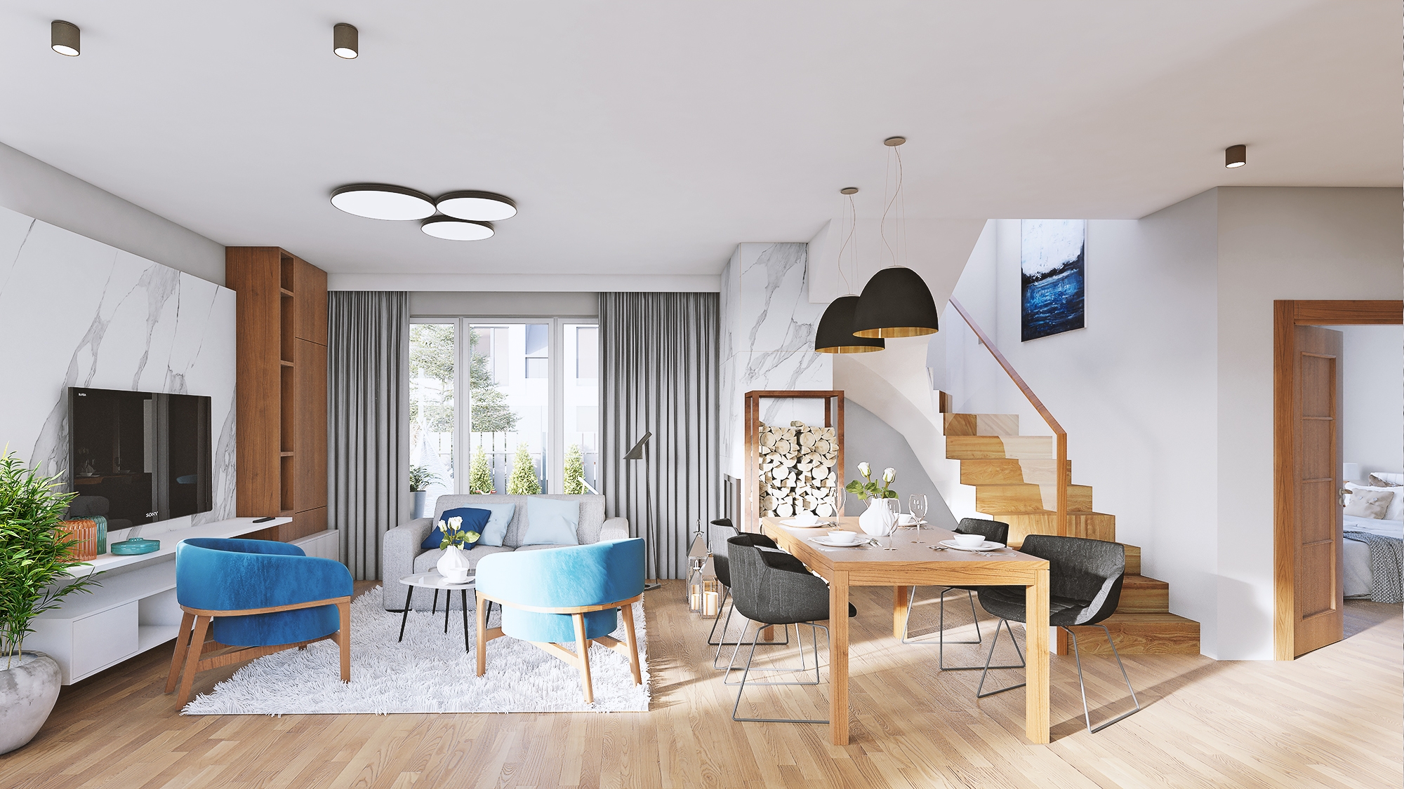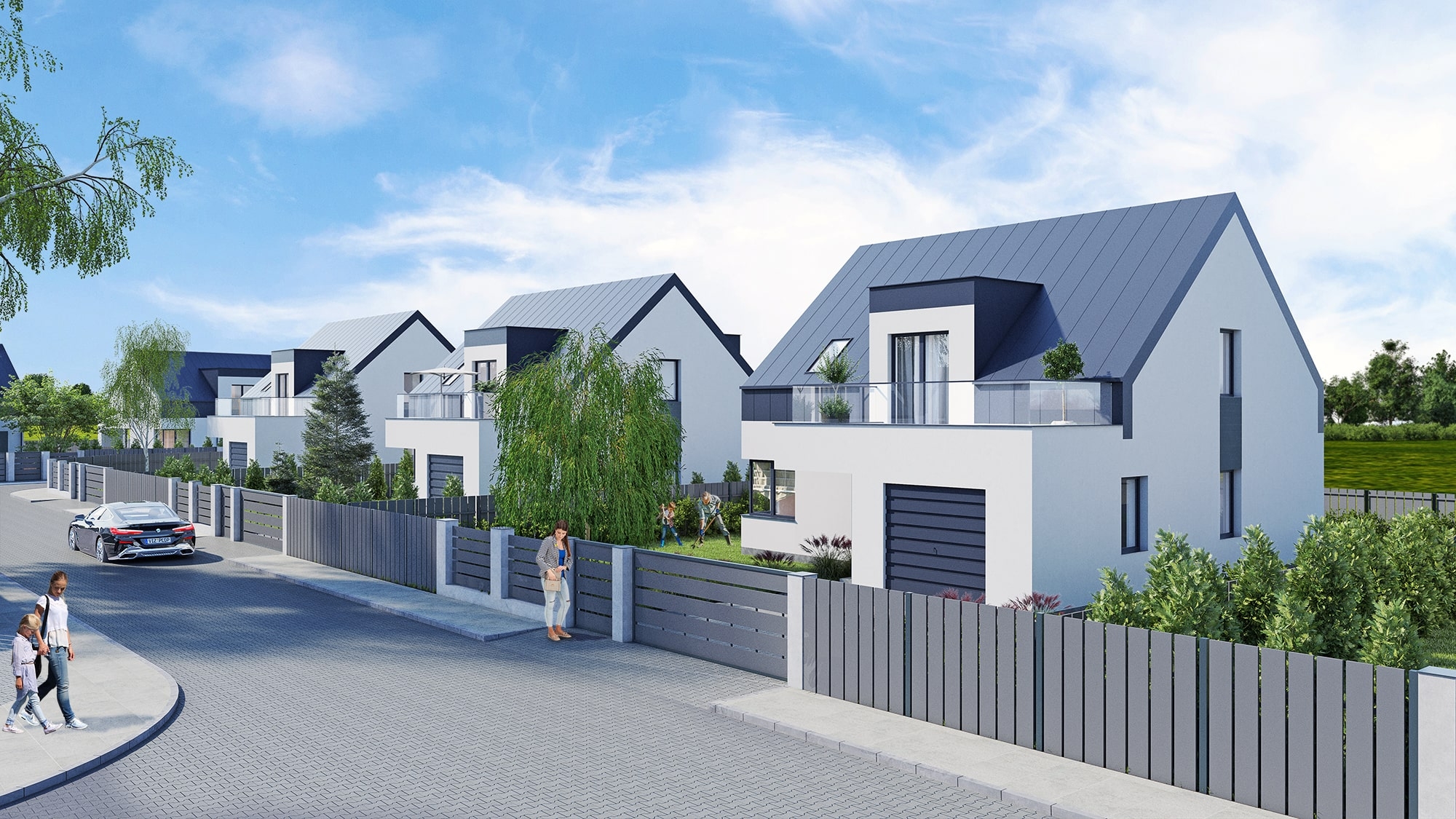 Domy posiadać będą przyłącza: gazowe, elektryczne, wodne i kanalizacyjne, a także instalację pod rekuperację.