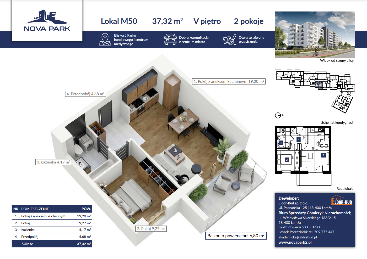 Nova Park znajduje się przy ul. Akademickiej w Łomży. Lokalizacja ta gwarantuje codzienną wygodę w dojeździe do pracy, szkoły, na uczelnię, zakupy czy do wielu wyjątkowych miejsc rekreacji. Niedaleko m.in. kilka przystanków autobusowych oraz kluczowych tras dojazdowych, ułatwiających dostęp do każdej części Łomży. W jej ścisłym centrum można znaleźć się w mniej niż 7 minut. W pobliżu inwestycji nie brakuje również rozległych terenów zielonych, idealnych na długie spacery, jogging czy wycieczki rowerowe.