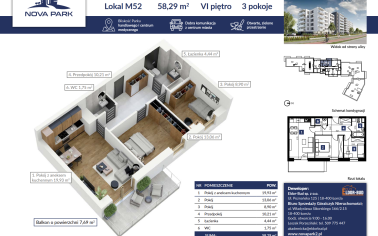Nova Park znajduje się przy ul. Akademickiej w Łomży. Lokalizacja ta gwarantuje codzienną wygodę w dojeździe do pracy, szkoły, na uczelnię, zakupy czy do wielu wyjątkowych miejsc rekreacji. Niedaleko m.in. kilka przystanków autobusowych oraz kluczowych tras dojazdowych, ułatwiających dostęp do każdej części Łomży. W jej ścisłym centrum można znaleźć się w mniej niż 7 minut. W pobliżu inwestycji nie brakuje również rozległych terenów zielonych, idealnych na długie spacery, jogging czy wycieczki rowerowe.
