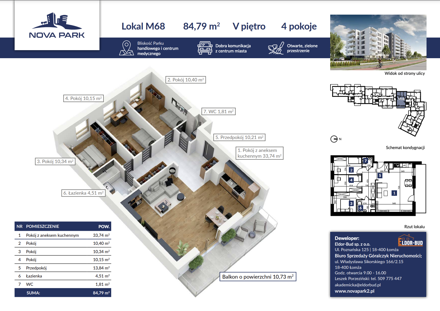 Nova Park znajduje się przy ul. Akademickiej w Łomży. Lokalizacja ta gwarantuje codzienną wygodę w dojeździe do pracy, szkoły, na uczelnię, zakupy czy do wielu wyjątkowych miejsc rekreacji. Niedaleko m.in. kilka przystanków autobusowych oraz kluczowych tras dojazdowych, ułatwiających dostęp do każdej części Łomży. W jej ścisłym centrum można znaleźć się w mniej niż 7 minut. W pobliżu inwestycji nie brakuje również rozległych terenów zielonych, idealnych na długie spacery, jogging czy wycieczki rowerowe.
