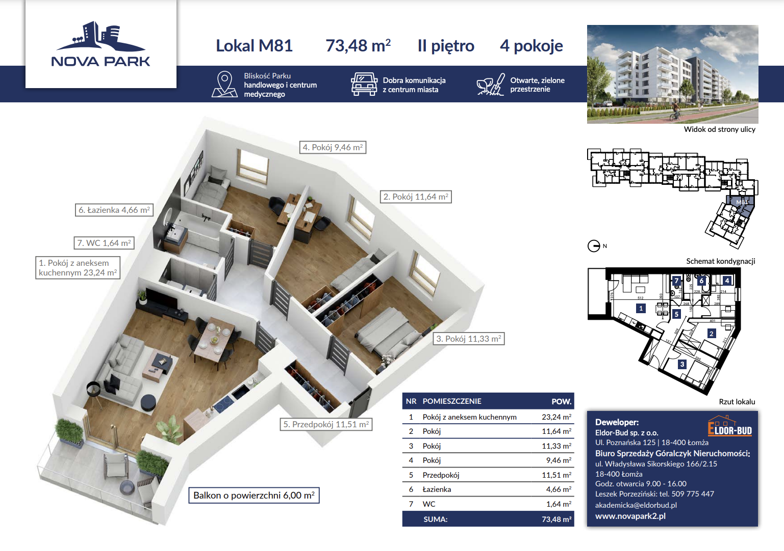Nova Park znajduje się przy ul. Akademickiej w Łomży. Lokalizacja ta gwarantuje codzienną wygodę w dojeździe do pracy, szkoły, na uczelnię, zakupy czy do wielu wyjątkowych miejsc rekreacji. Niedaleko m.in. kilka przystanków autobusowych oraz kluczowych tras dojazdowych, ułatwiających dostęp do każdej części Łomży. W jej ścisłym centrum można znaleźć się w mniej niż 7 minut. W pobliżu inwestycji nie brakuje również rozległych terenów zielonych, idealnych na długie spacery, jogging czy wycieczki rowerowe.