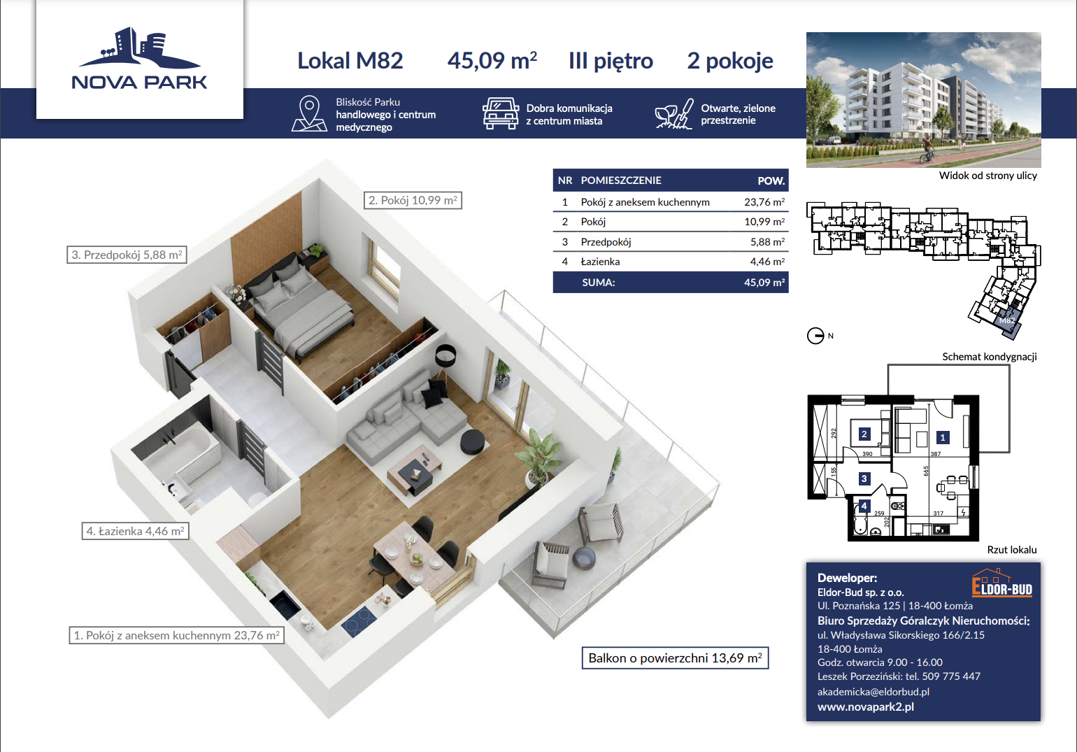 Nova Park znajduje się przy ul. Akademickiej w Łomży. Lokalizacja ta gwarantuje codzienną wygodę w dojeździe do pracy, szkoły, na uczelnię, zakupy czy do wielu wyjątkowych miejsc rekreacji. Niedaleko m.in. kilka przystanków autobusowych oraz kluczowych tras dojazdowych, ułatwiających dostęp do każdej części Łomży. W jej ścisłym centrum można znaleźć się w mniej niż 7 minut. W pobliżu inwestycji nie brakuje również rozległych terenów zielonych, idealnych na długie spacery, jogging czy wycieczki rowerowe.