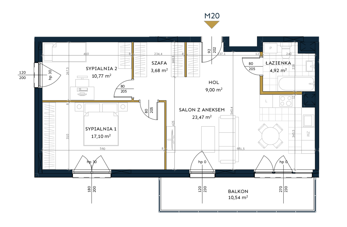 - Salon z aneksem (23,47 m²)