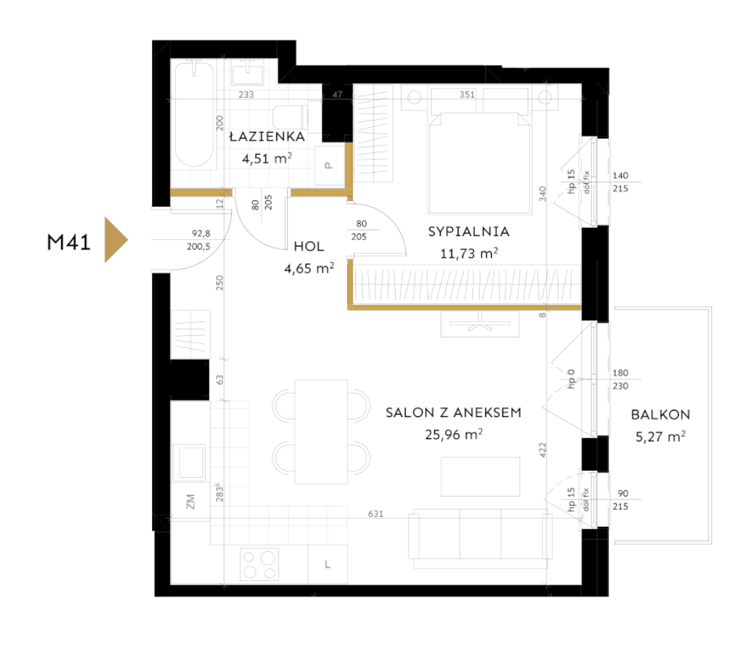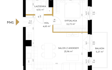 Salon z aneksem 25,96 m²