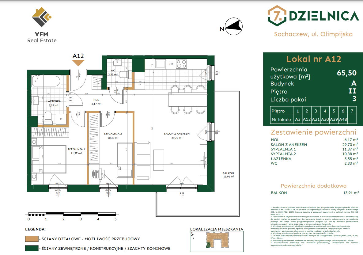 Sochaczew to miasto przyjazne, otwarte i nowoczesne. Taka jest Inwestycja deweloperska w centrum miasta - 7. Dzielnica, projekt realizowany przez VFM Real Estate. Inwestycja zlokalizowana tuż obok miejskiego ośrodka sportu i rekreacji. W ciągu kilku lat powstanie tu najnowocześniejsze osiedle w Sochaczewie - nowe tętno miasta.Dzielnica Olimpijska to teren wyposażony w strefy rekreacyjne dla komfortowego życia jej mieszkańców. Inwestycja zakłada realizację osiedla złożonego z 5 budynków mieszkalnych. Do dyspozycji mieszkańców będą liczne miejsca parkingowe naziemne oraz garaż podziemny, praktyczne stojaki na rowery i bezpieczna wózkownia. Dodatkowo na terenie osiedla znajdzie się stacja do ładowania pojazdów elektrycznych, paczkomat, parkingi na rowery oraz lokale usługowe. Wyróżnikiem inwestycji są tereny rekreacyjne, plac zabaw i zielone skwery.