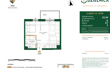 Metraż: 32,59 m²