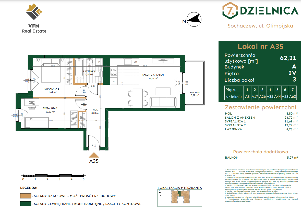 Sochaczew to miasto przyjazne, otwarte i nowoczesne. Taka jest Inwestycja deweloperska w centrum miasta - 7. Dzielnica, projekt realizowany przez VFM Real Estate. Inwestycja zlokalizowana tuż obok miejskiego ośrodka sportu i rekreacji. W ciągu kilku lat powstanie tu najnowocześniejsze osiedle w Sochaczewie - nowe tętno miasta.Dzielnica Olimpijska to teren wyposażony w strefy rekreacyjne dla komfortowego życia jej mieszkańców. Inwestycja zakłada realizację osiedla złożonego z 5 budynków mieszkalnych. Do dyspozycji mieszkańców będą liczne miejsca parkingowe naziemne oraz garaż podziemny, praktyczne stojaki na rowery i bezpieczna wózkownia. Dodatkowo na terenie osiedla znajdzie się stacja do ładowania pojazdów elektrycznych, paczkomat, parkingi na rowery oraz lokale usługowe. Wyróżnikiem inwestycji są tereny rekreacyjne, plac zabaw i zielone skwery.