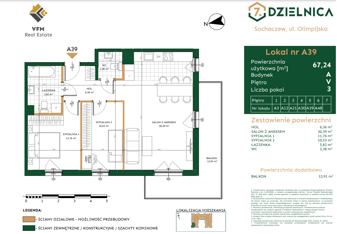 Sochaczew to miasto przyjazne, otwarte i nowoczesne. Taka jest Inwestycja deweloperska w centrum miasta - 7. Dzielnica, projekt realizowany przez VFM Real Estate. Inwestycja zlokalizowana tuż obok miejskiego ośrodka sportu i rekreacji. W ciągu kilku lat powstanie tu najnowocześniejsze osiedle w Sochaczewie - nowe tętno miasta.Dzielnica Olimpijska to teren wyposażony w strefy rekreacyjne dla komfortowego życia jej mieszkańców. Inwestycja zakłada realizację osiedla złożonego z 5 budynków mieszkalnych. Do dyspozycji mieszkańców będą liczne miejsca parkingowe naziemne oraz garaż podziemny, praktyczne stojaki na rowery i bezpieczna wózkownia. Dodatkowo na terenie osiedla znajdzie się stacja do ładowania pojazdów elektrycznych, paczkomat, parkingi na rowery oraz lokale usługowe. Wyróżnikiem inwestycji są tereny rekreacyjne, plac zabaw i zielone skwery.