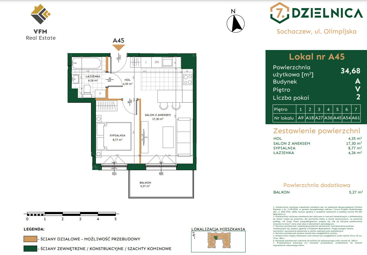 Sochaczew to miasto przyjazne, otwarte i nowoczesne. Taka jest Inwestycja deweloperska w centrum miasta - 7. Dzielnica, projekt realizowany przez VFM Real Estate. Inwestycja zlokalizowana tuż obok miejskiego ośrodka sportu i rekreacji. W ciągu kilku lat powstanie tu najnowocześniejsze osiedle w Sochaczewie - nowe tętno miasta.Dzielnica Olimpijska to teren wyposażony w strefy rekreacyjne dla komfortowego życia jej mieszkańców. Inwestycja zakłada realizację osiedla złożonego z 5 budynków mieszkalnych. Do dyspozycji mieszkańców będą liczne miejsca parkingowe naziemne oraz garaż podziemny, praktyczne stojaki na rowery i bezpieczna wózkownia. Dodatkowo na terenie osiedla znajdzie się stacja do ładowania pojazdów elektrycznych, paczkomat, parkingi na rowery oraz lokale usługowe. Wyróżnikiem inwestycji są tereny rekreacyjne, plac zabaw i zielone skwery.