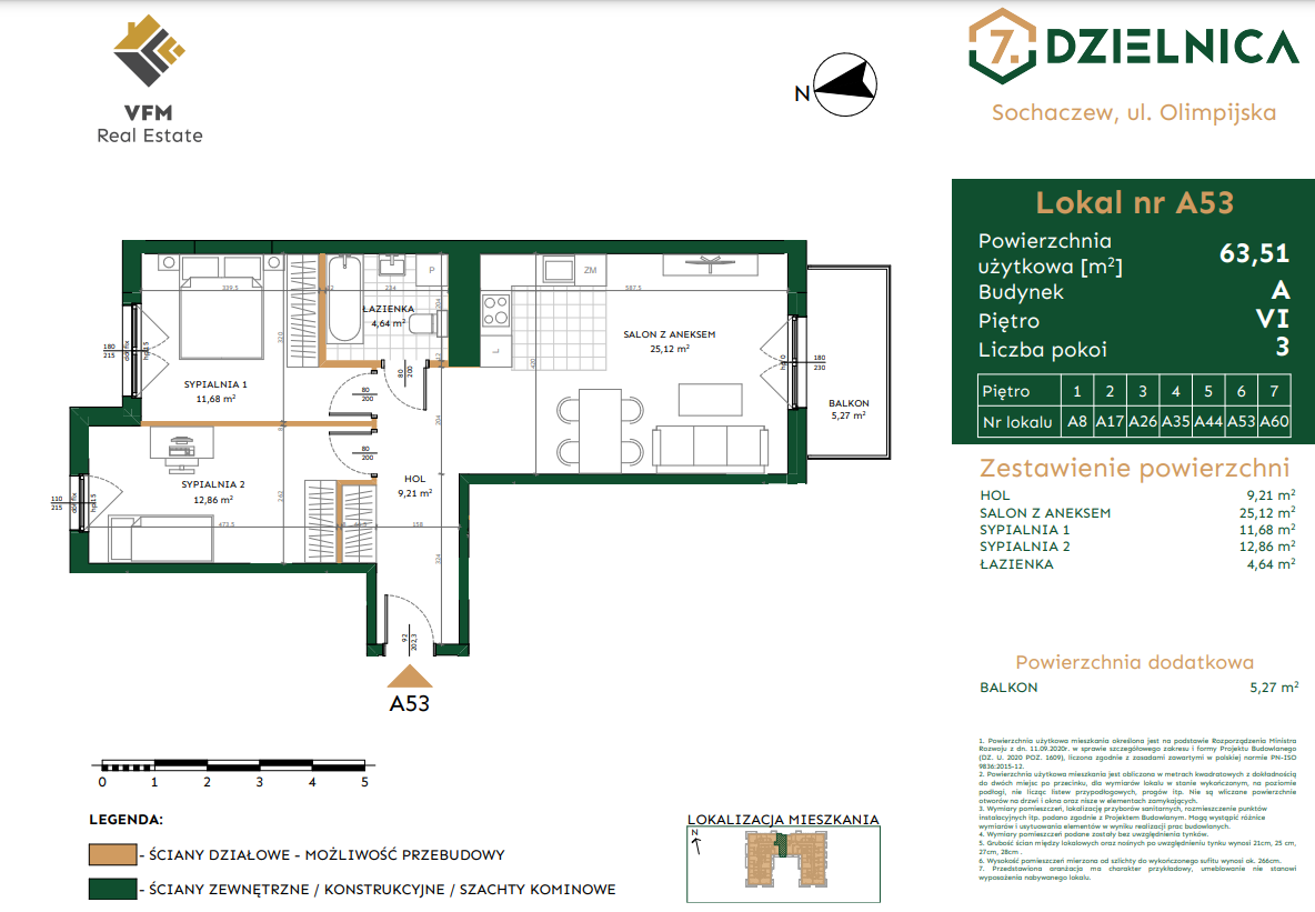 Sochaczew to miasto przyjazne, otwarte i nowoczesne. Taka jest Inwestycja deweloperska w centrum miasta - 7. Dzielnica, projekt realizowany przez VFM Real Estate. Inwestycja zlokalizowana tuż obok miejskiego ośrodka sportu i rekreacji. W ciągu kilku lat powstanie tu najnowocześniejsze osiedle w Sochaczewie - nowe tętno miasta.Dzielnica Olimpijska to teren wyposażony w strefy rekreacyjne dla komfortowego życia jej mieszkańców. Inwestycja zakłada realizację osiedla złożonego z 5 budynków mieszkalnych. Do dyspozycji mieszkańców będą liczne miejsca parkingowe naziemne oraz garaż podziemny, praktyczne stojaki na rowery i bezpieczna wózkownia. Dodatkowo na terenie osiedla znajdzie się stacja do ładowania pojazdów elektrycznych, paczkomat, parkingi na rowery oraz lokale usługowe. Wyróżnikiem inwestycji są tereny rekreacyjne, plac zabaw i zielone skwery.