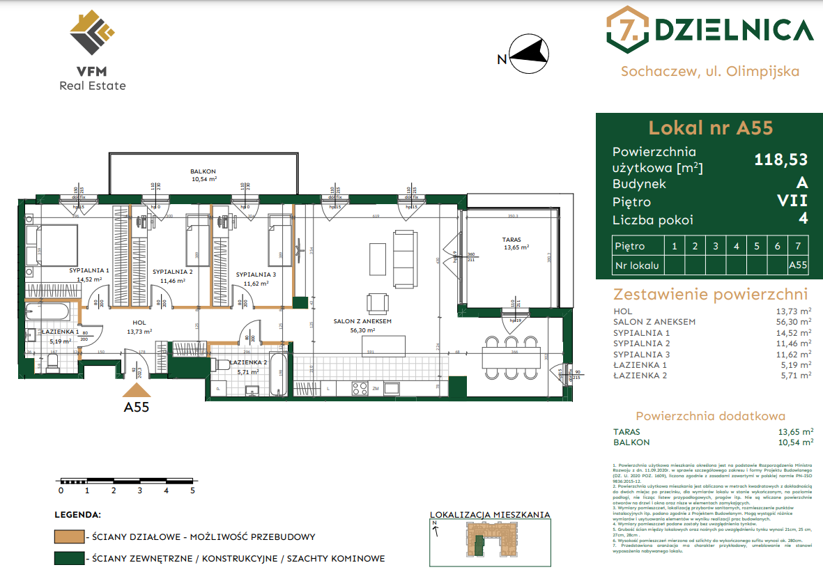 Sochaczew to miasto przyjazne, otwarte i nowoczesne. Taka jest Inwestycja deweloperska w centrum miasta - 7. Dzielnica, projekt realizowany przez VFM Real Estate. Inwestycja zlokalizowana tuż obok miejskiego ośrodka sportu i rekreacji. W ciągu kilku lat powstanie tu najnowocześniejsze osiedle w Sochaczewie - nowe tętno miasta.Dzielnica Olimpijska to teren wyposażony w strefy rekreacyjne dla komfortowego życia jej mieszkańców. Inwestycja zakłada realizację osiedla złożonego z 5 budynków mieszkalnych. Do dyspozycji mieszkańców będą liczne miejsca parkingowe naziemne oraz garaż podziemny, praktyczne stojaki na rowery i bezpieczna wózkownia. Dodatkowo na terenie osiedla znajdzie się stacja do ładowania pojazdów elektrycznych, paczkomat, parkingi na rowery oraz lokale usługowe. Wyróżnikiem inwestycji są tereny rekreacyjne, plac zabaw i zielone skwery.
