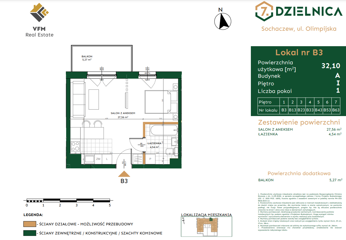 Sochaczew to miasto przyjazne, otwarte i nowoczesne. Taka jest Inwestycja deweloperska w centrum miasta - 7. Dzielnica, projekt realizowany przez VFM Real Estate. Inwestycja zlokalizowana tuż obok miejskiego ośrodka sportu i rekreacji. W ciągu kilku lat powstanie tu najnowocześniejsze osiedle w Sochaczewie - nowe tętno miasta.Dzielnica Olimpijska to teren wyposażony w strefy rekreacyjne dla komfortowego życia jej mieszkańców. Inwestycja zakłada realizację osiedla złożonego z 5 budynków mieszkalnych. Do dyspozycji mieszkańców będą liczne miejsca parkingowe naziemne oraz garaż podziemny, praktyczne stojaki na rowery i bezpieczna wózkownia. Dodatkowo na terenie osiedla znajdzie się stacja do ładowania pojazdów elektrycznych, paczkomat, parkingi na rowery oraz lokale usługowe. Wyróżnikiem inwestycji są tereny rekreacyjne, plac zabaw i zielone skwery.