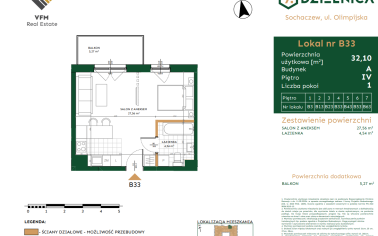 Metraż: 32,10 m²