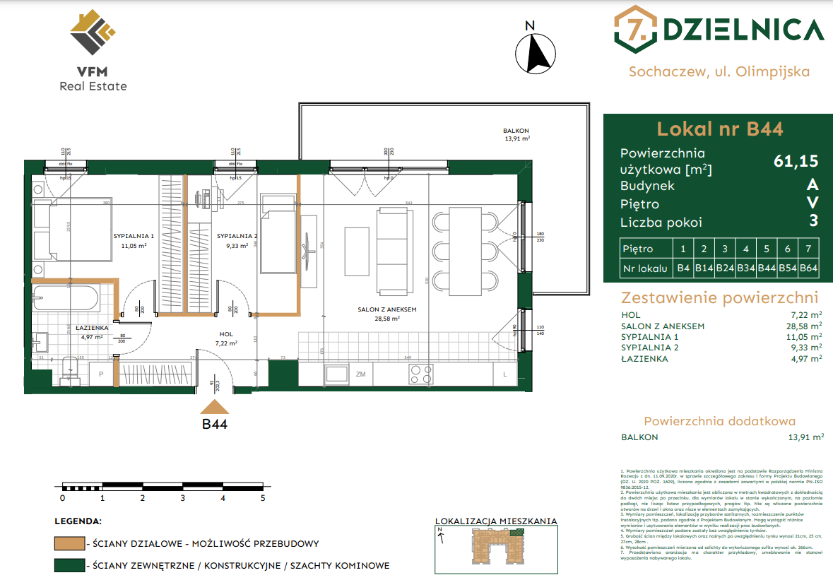 Sochaczew to miasto przyjazne, otwarte i nowoczesne. Taka jest Inwestycja deweloperska w centrum miasta - 7. Dzielnica, projekt realizowany przez VFM Real Estate. Inwestycja zlokalizowana tuż obok miejskiego ośrodka sportu i rekreacji. W ciągu kilku lat powstanie tu najnowocześniejsze osiedle w Sochaczewie - nowe tętno miasta.Dzielnica Olimpijska to teren wyposażony w strefy rekreacyjne dla komfortowego życia jej mieszkańców. Inwestycja zakłada realizację osiedla złożonego z 5 budynków mieszkalnych. Do dyspozycji mieszkańców będą liczne miejsca parkingowe naziemne oraz garaż podziemny, praktyczne stojaki na rowery i bezpieczna wózkownia. Dodatkowo na terenie osiedla znajdzie się stacja do ładowania pojazdów elektrycznych, paczkomat, parkingi na rowery oraz lokale usługowe. Wyróżnikiem inwestycji są tereny rekreacyjne, plac zabaw i zielone skwery.