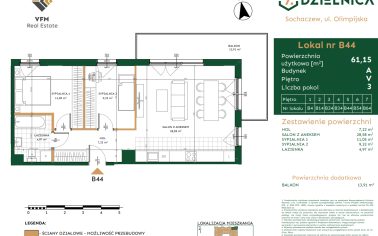 Metraż: 61,15 m²