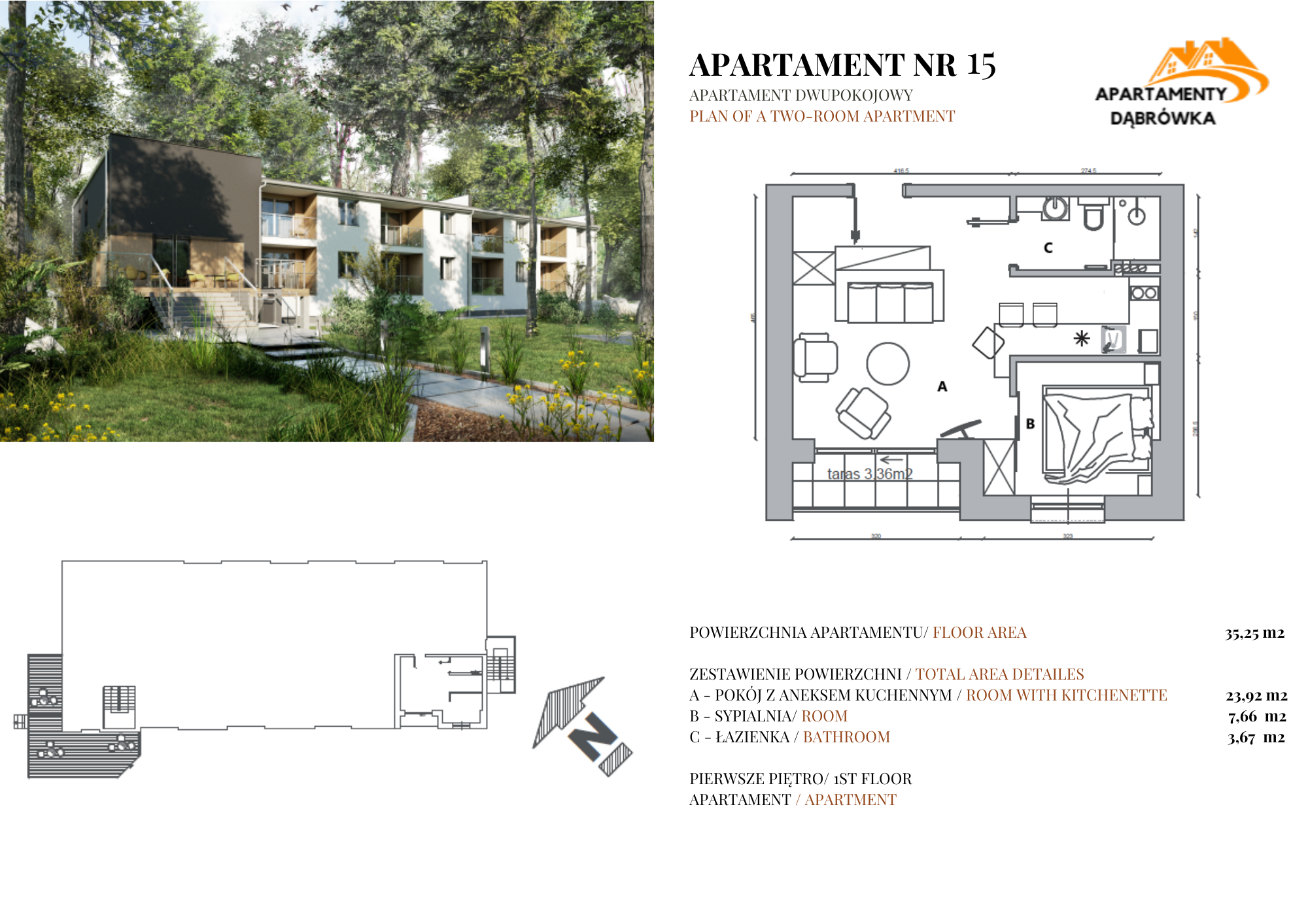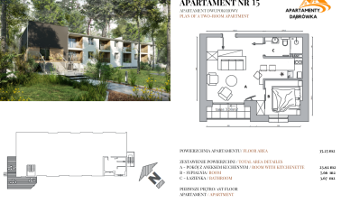 Oferowane apartamenty są wykończone do użytkowania. Zastosowane wysokiej klasy materiały, takie jak panele o wysokiej klasie ścieralności czy zmywalne farby na ścianach będą się sprawdzać przez długi czas. Wszystkie oferowane apartamenty posiadają aneksy kuchenne wyposażone w lodówkę, zmywarkę, płytę grzewczą oraz wyciąg kuchenny. W salonie oraz w sypialni zostały zamontowane zabudowane szafy. Łazienki są kompletnie wykończone wraz z zamontowanym białym montażem i przestronną kabiną prysznicową. We wszystkich pomieszczeniach zostało zamontowane oświetlenie. Z salonu na taras wyjdziemy przez duże przesuwne drzwi, a w sypialni znajdziemy grube, dwustronne rolety zapewniające intymność.