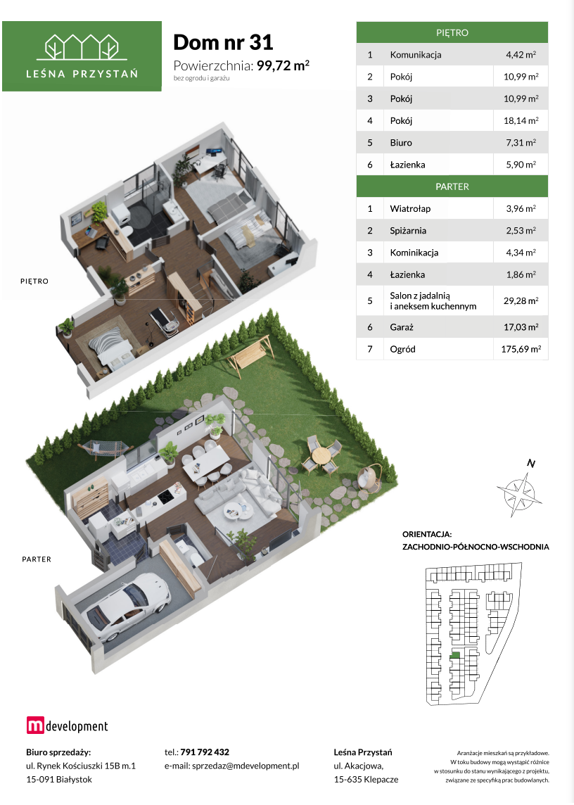 Swoją bezpieczną przystań znajdą tu osoby pragnące uciec od zgiełku miasta, marzące o własnym ogrodzie, chcące obcować z otaczającą naturą, ale jednocześnie pozostając w doskonałej komunikacji ze wszystkimi dobrami aglomeracji miejskiej. Zaledwie 12 minut jazdy samochodem zajmie dostanie się na białostocki deptak, zaś aż o połowę skrócimy czas podróży, wybierając przejazd pobliską koleją.
