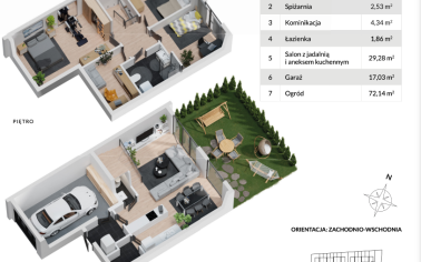 Na 68 segmentach rozplanowaliśmy funkcjonalne układy w zróżnicowanych konfiguracjach. Każdy z nich to dwie kondygnacje o łącznej powierzchni mieszkalnej od 72 do niecałych 100 m2. Do każdego lokalu przynależeć będzie ogród – tu powierzchnie zaczynają się od 60 m2 i sięgają do ponad 340 m2. W skład części domów wchodził będzie jednostanowiskowy garaż, zaś przy każdym budynku zostanie wygospodarowane miejsce postojowe.