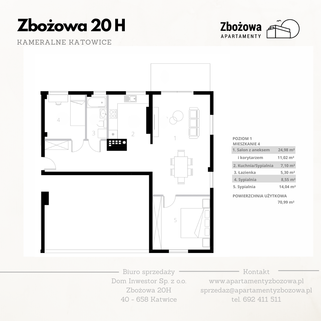 Apartamenty Zbożowa to kameralna inwestycja, składająca się z kilkunastu mieszkań wraz z garażami w przyziemiu budynku.