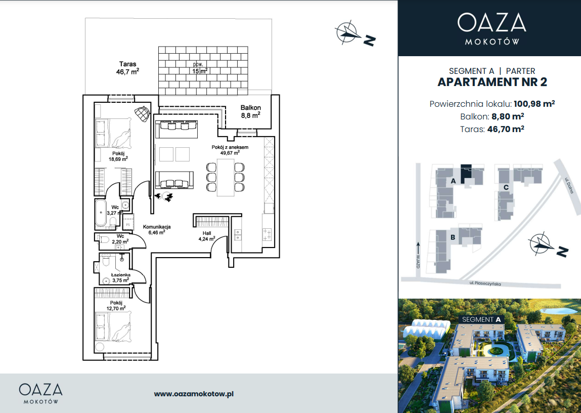 Balkon: 8.8 m2Taras: 46.7 m2