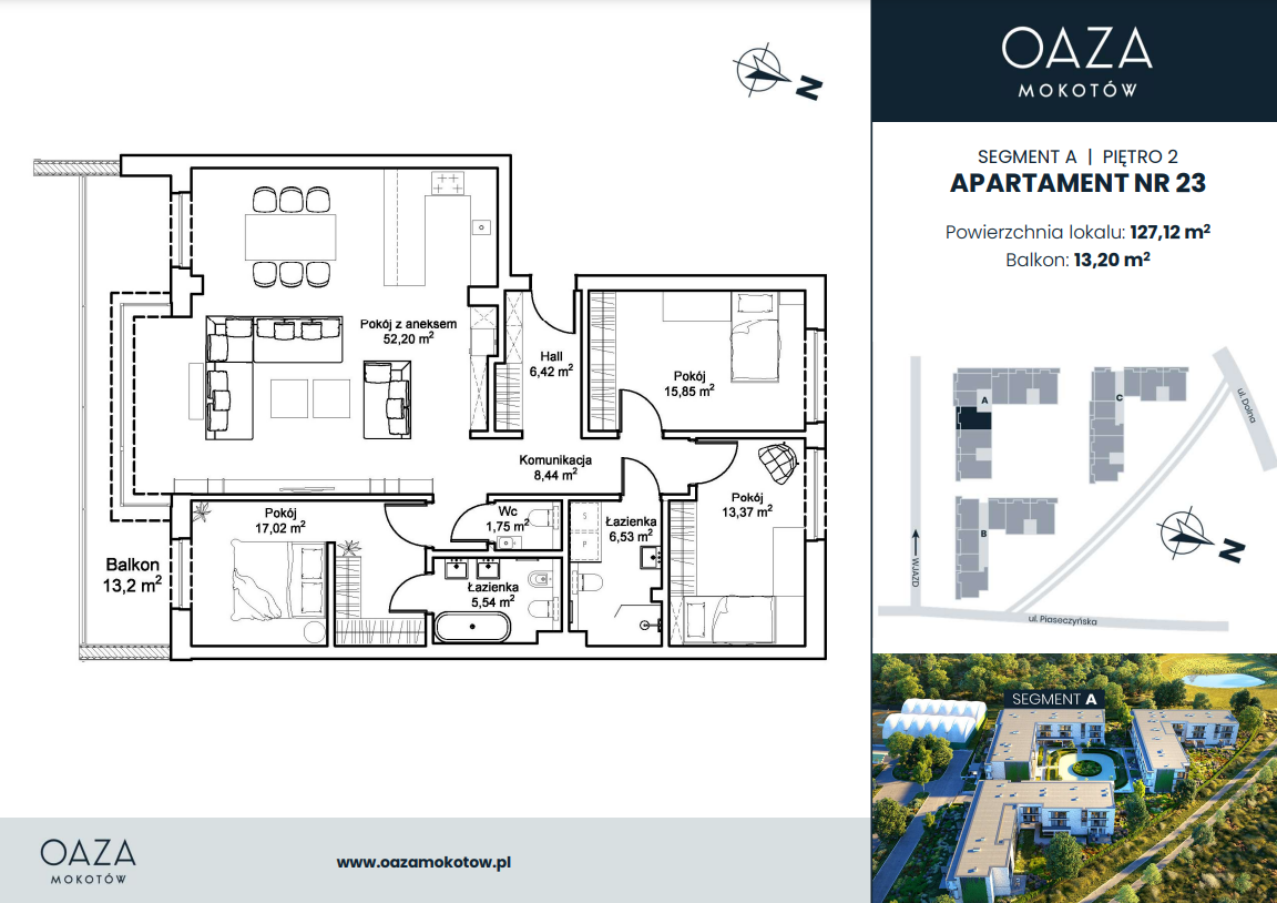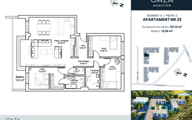 Inwestycja Oaza Mokotów zlokalizowana jest w ścisłym centrum Mokotowa, przy ulicy Piaseczyńskiej 41, w sąsiedztwie terenów zielonych oraz rekreacyjnych Klubu Sportowego Warszawianka – boiska sportowe, korty tenisowe oraz Park Wodny ze strefą Spa & Wellness. Od strony zachodniej nieruchomość przylega do przepięknej skarpy o wysokości kilkunastu metrów oraz naturalnego stawu. W pobliżu znajdują się liczne kawiarnie i popularne restauracje, które ściągają gości z całej Warszawy.