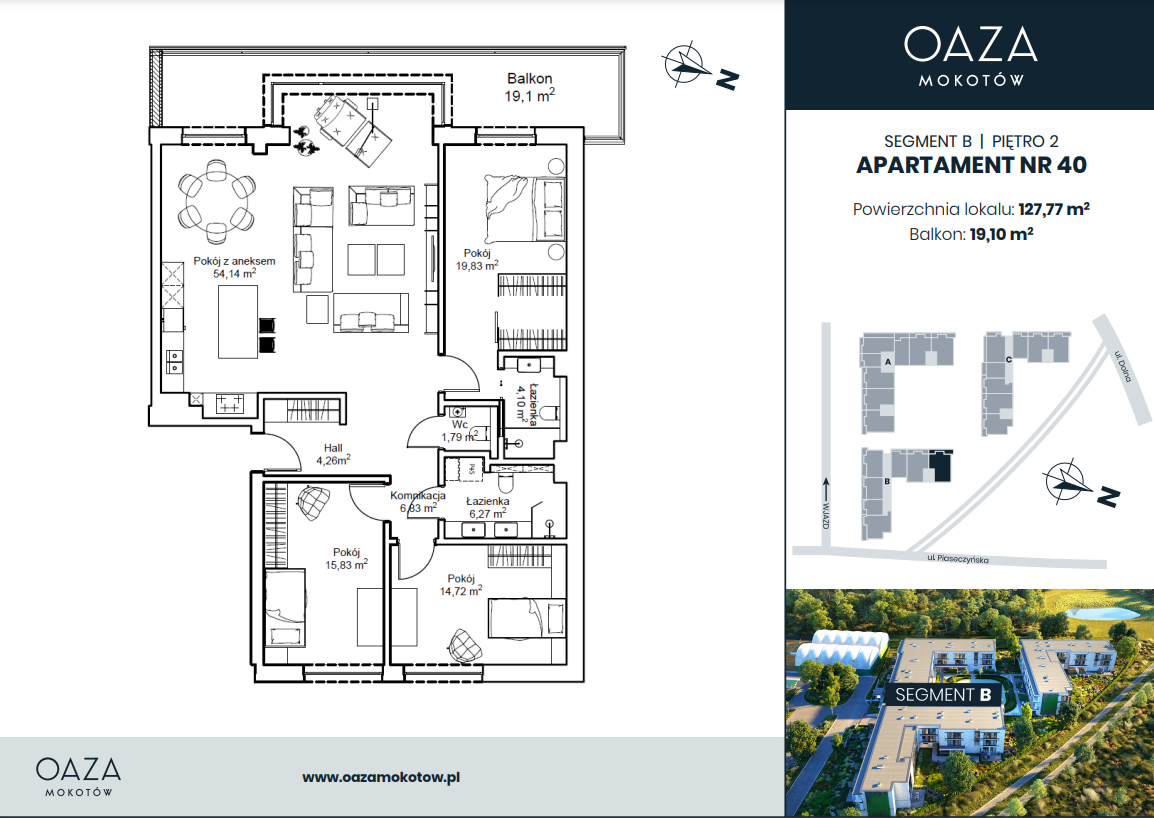Inwestycja Oaza Mokotów zlokalizowana jest w ścisłym centrum Mokotowa, przy ulicy Piaseczyńskiej 41, w sąsiedztwie terenów zielonych oraz rekreacyjnych Klubu Sportowego Warszawianka – boiska sportowe, korty tenisowe oraz Park Wodny ze strefą Spa & Wellness. Od strony zachodniej nieruchomość przylega do przepięknej skarpy o wysokości kilkunastu metrów oraz naturalnego stawu. W pobliżu znajdują się liczne kawiarnie i popularne restauracje, które ściągają gości z całej Warszawy.
