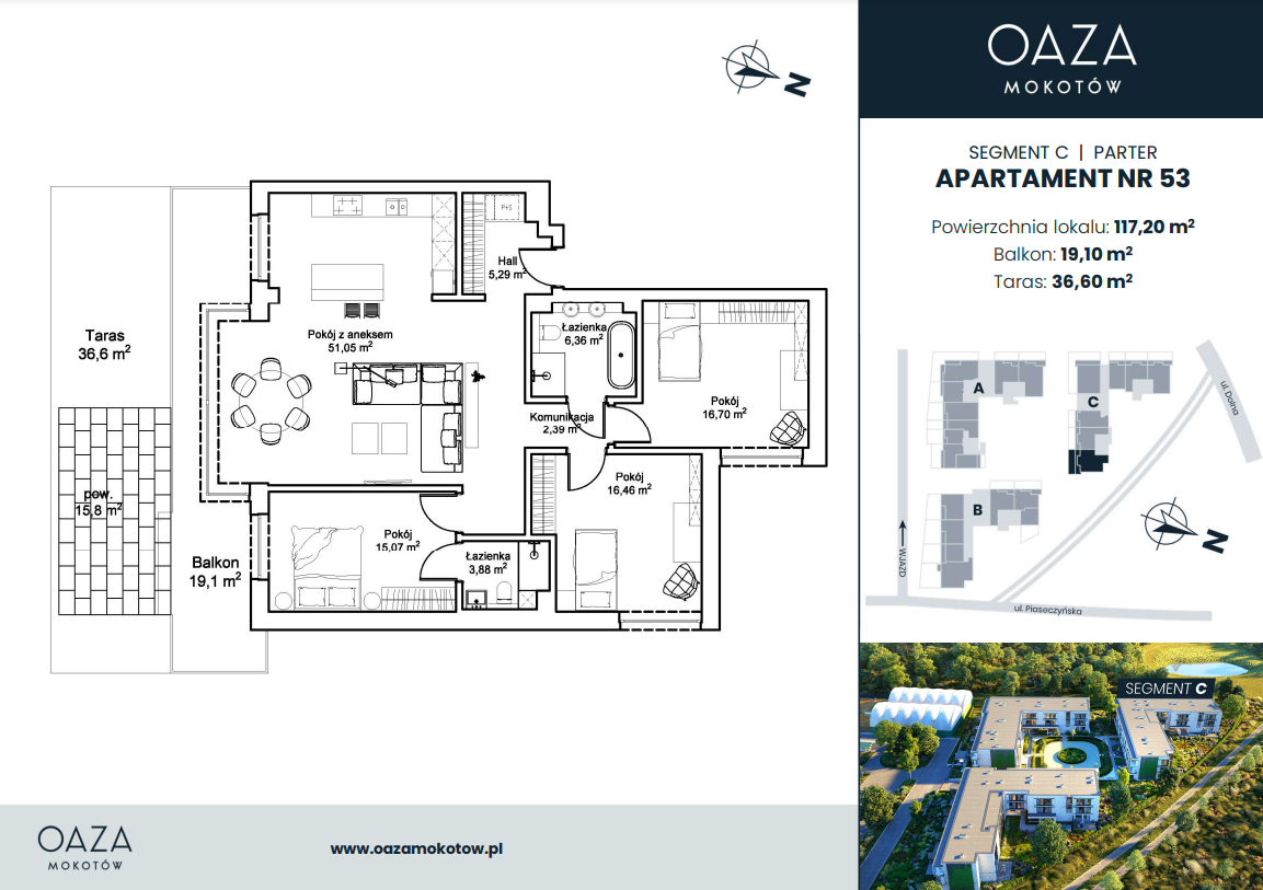 Inwestycja Oaza Mokotów zlokalizowana jest w ścisłym centrum Mokotowa, przy ulicy Piaseczyńskiej 41, w sąsiedztwie terenów zielonych oraz rekreacyjnych Klubu Sportowego Warszawianka – boiska sportowe, korty tenisowe oraz Park Wodny ze strefą Spa & Wellness. Od strony zachodniej nieruchomość przylega do przepięknej skarpy o wysokości kilkunastu metrów oraz naturalnego stawu. W pobliżu znajdują się liczne kawiarnie i popularne restauracje, które ściągają gości z całej Warszawy.