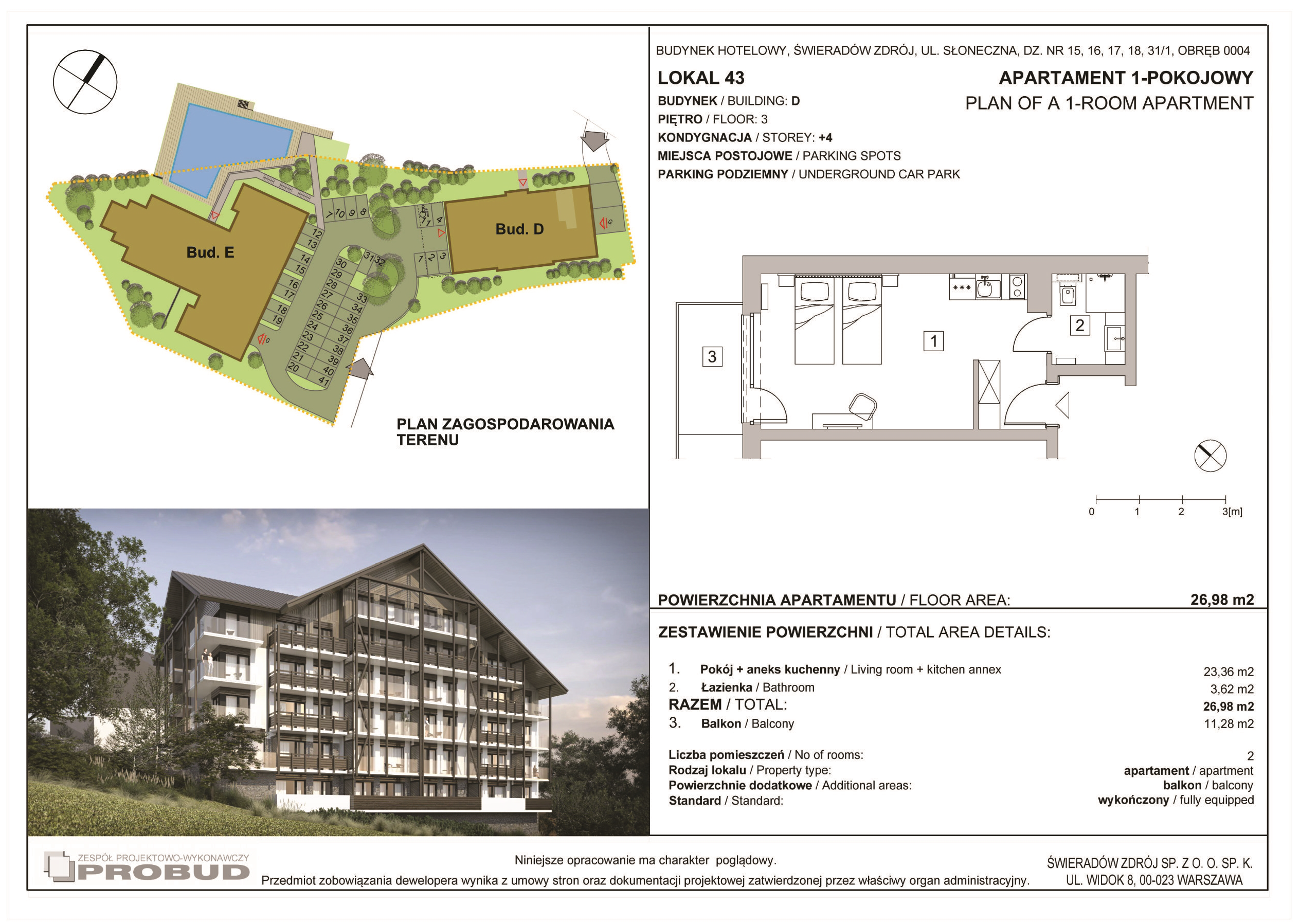 291 apartamentów hotelowych w budynku głównym (wszystkie apartamenty zostały już sprzedane)