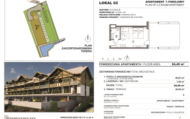 291 apartamentów hotelowych w budynku głównym (wszystkie apartamenty zostały już sprzedane)