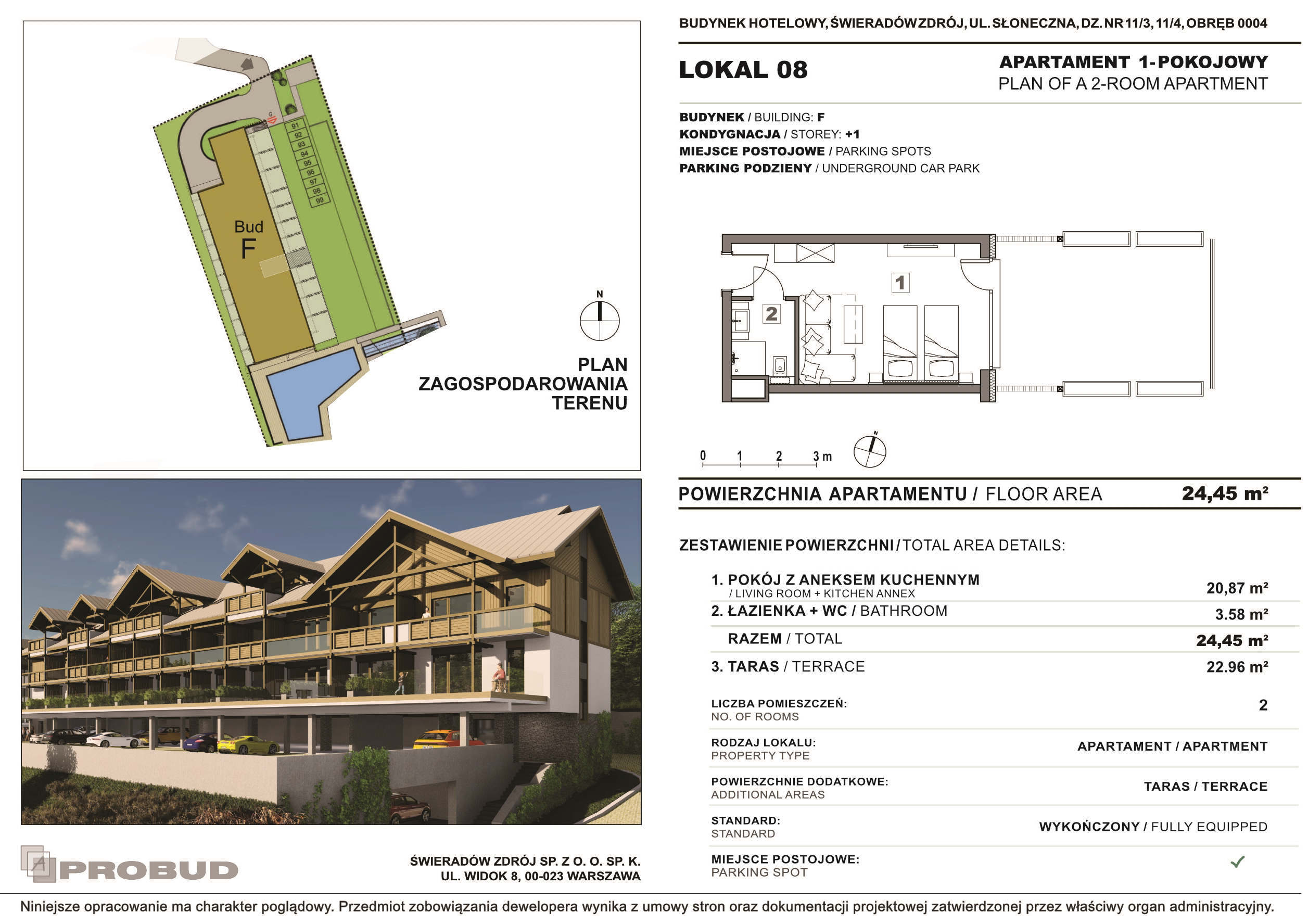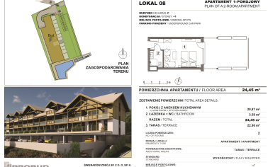 291 apartamentów hotelowych w budynku głównym (wszystkie apartamenty zostały już sprzedane)