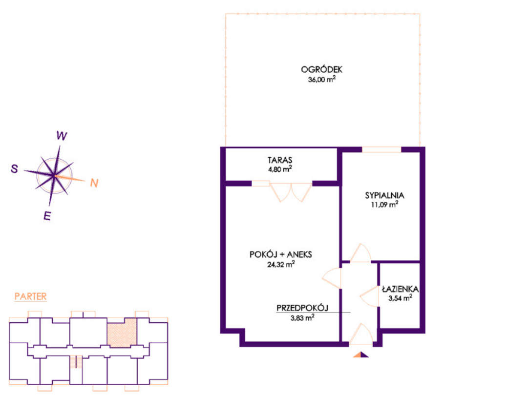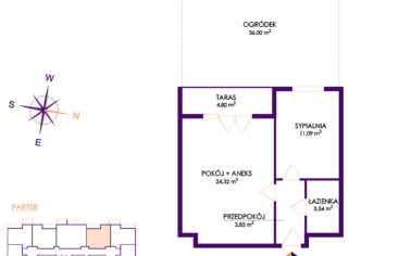 Jest to mieszkanie na parterze, posiada własny ogródek o powierzchni 36 m2.