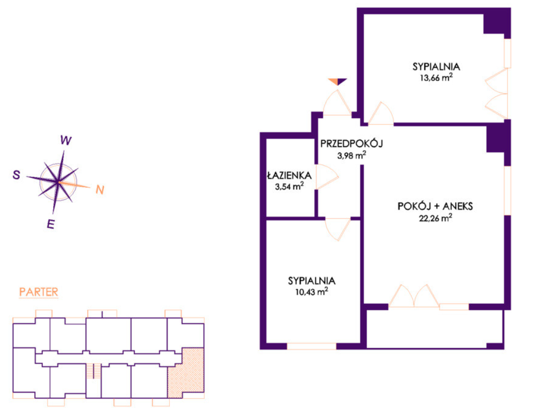 Jest to mieszkanie na parterze, posiada własny taras o wielkości 7,2 m2