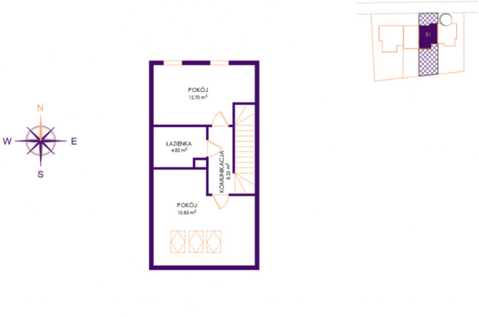 - 2 Pokoje 12,70 m2 i 10,83 m2