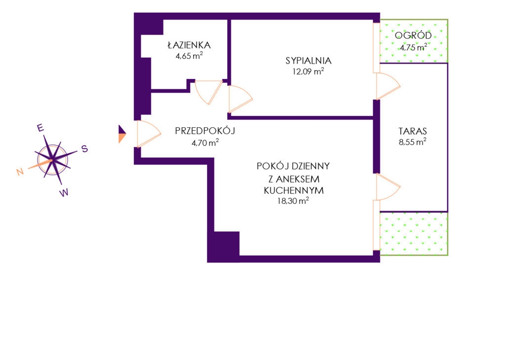 * Każdy apartament posiada dostęp do dużego balkonu, tarasu bądź ogródka.