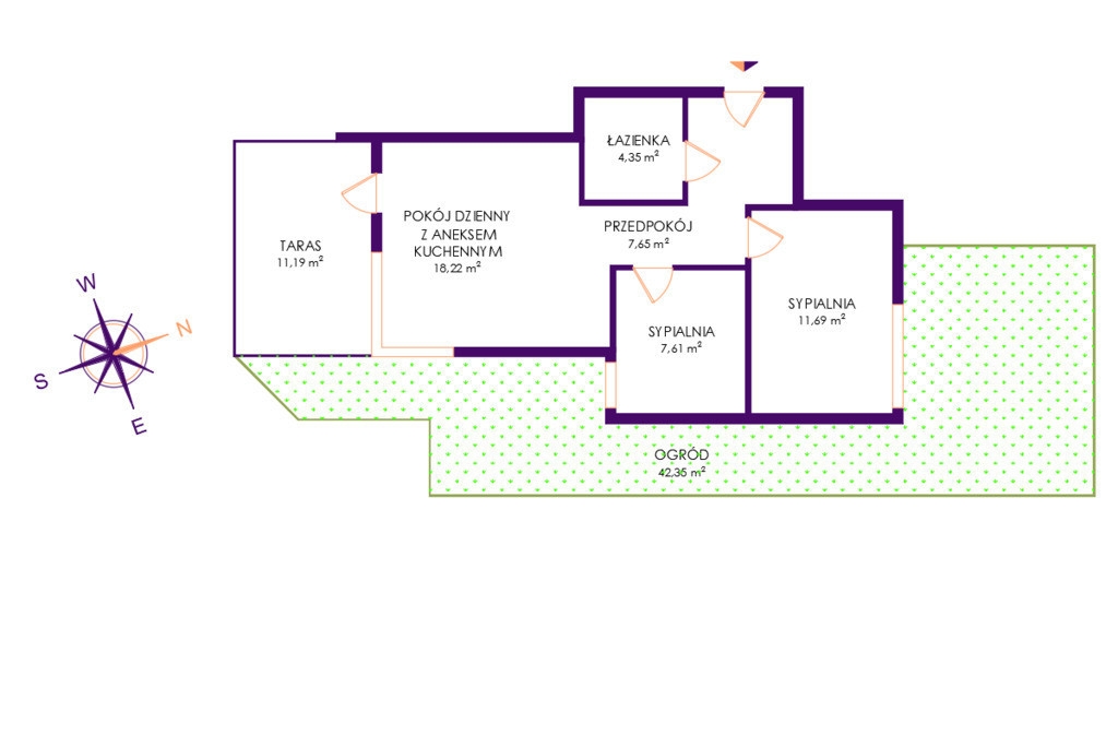 Prezentowany lokal mieści się na parterze i posiada własny ogródek o wielkości 42,35 m2.