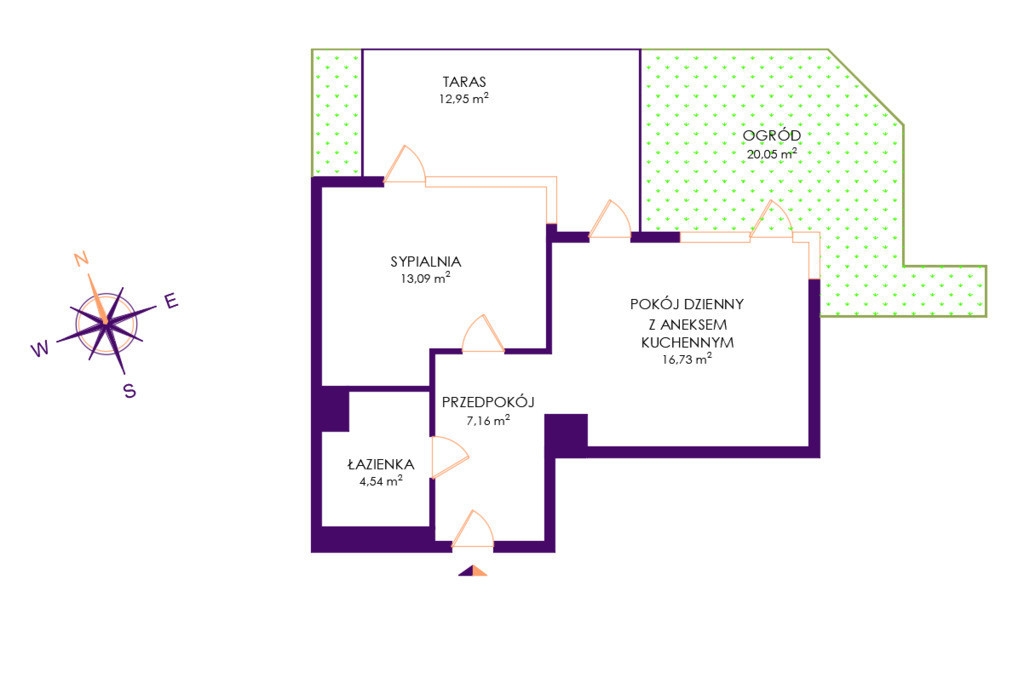 Prezentowany lokal mieści się na parterze i posiada własny ogródek o wielkości 20,05 m2.
