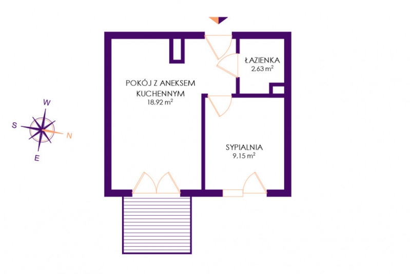 Metraż prezentowanego lokalu wynosi 30,70 m2 składa się z: