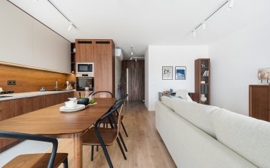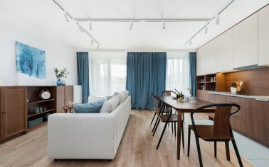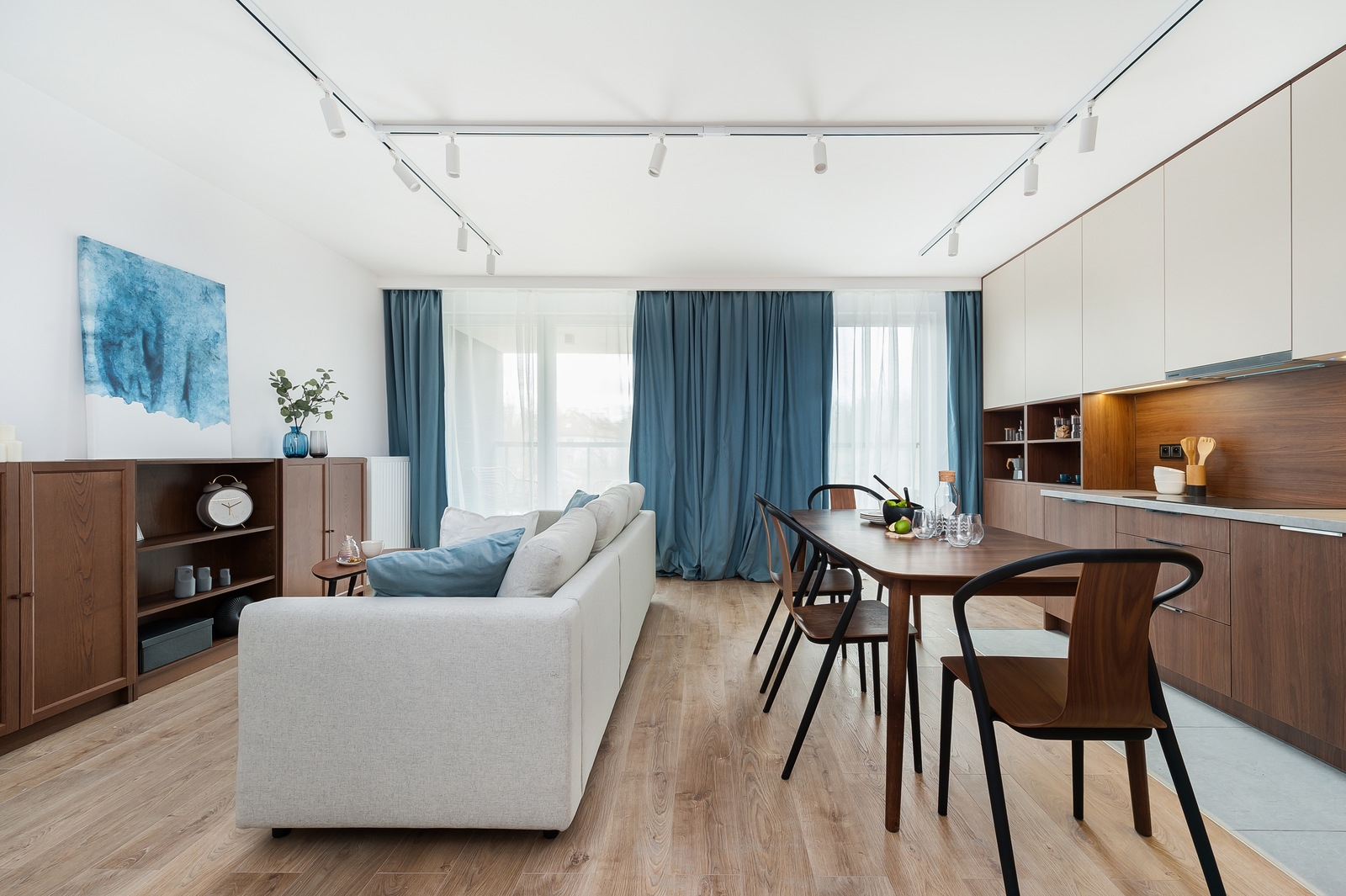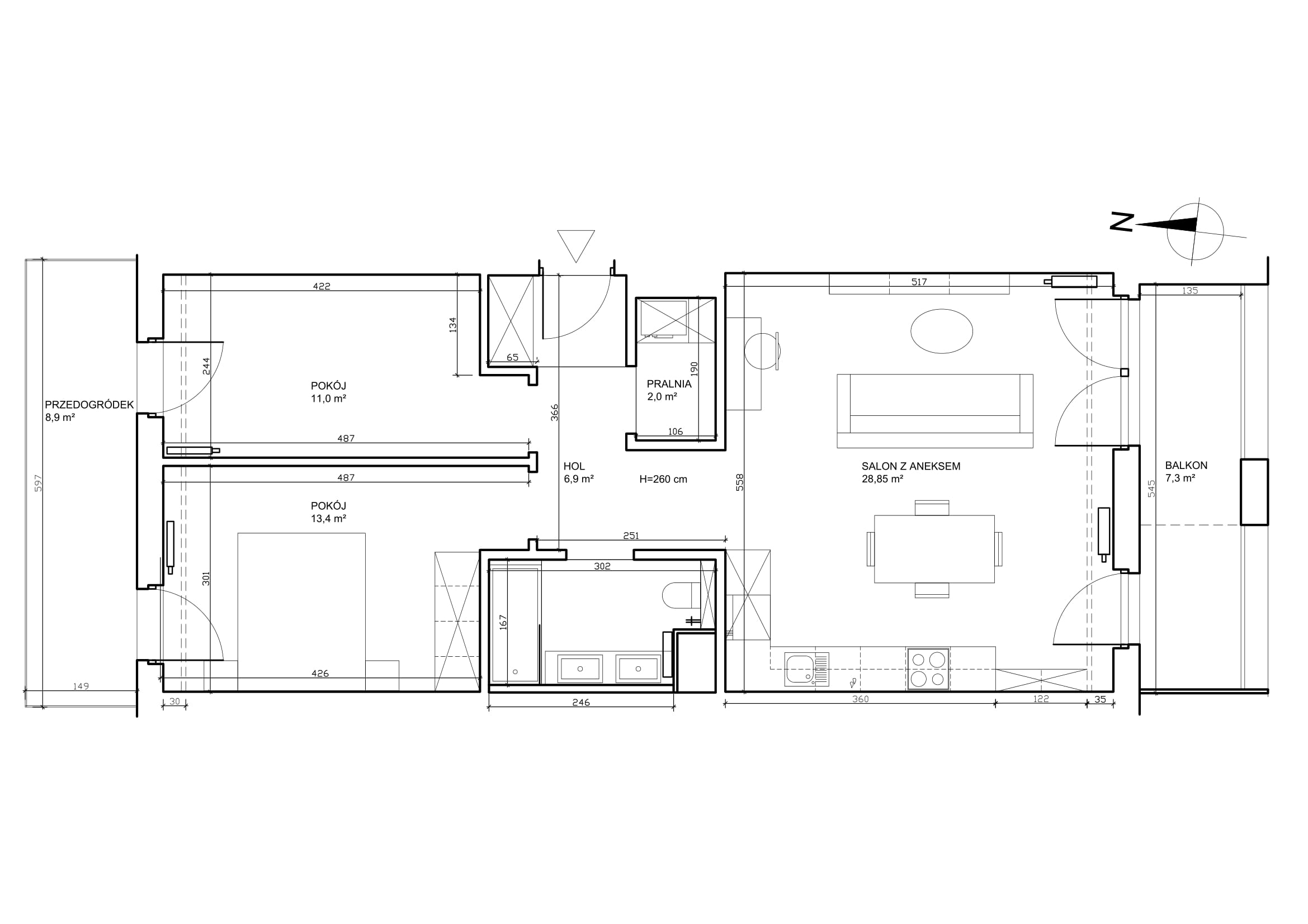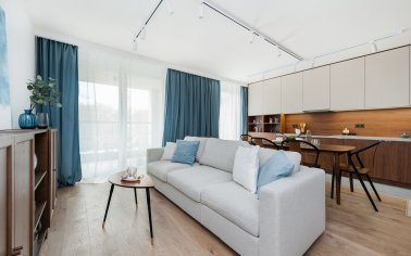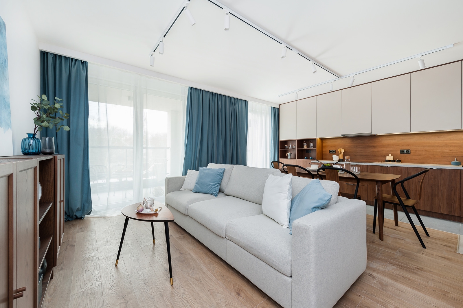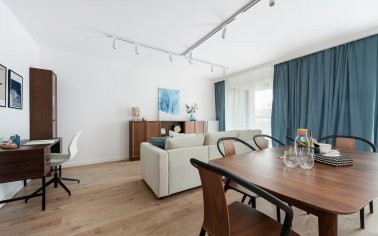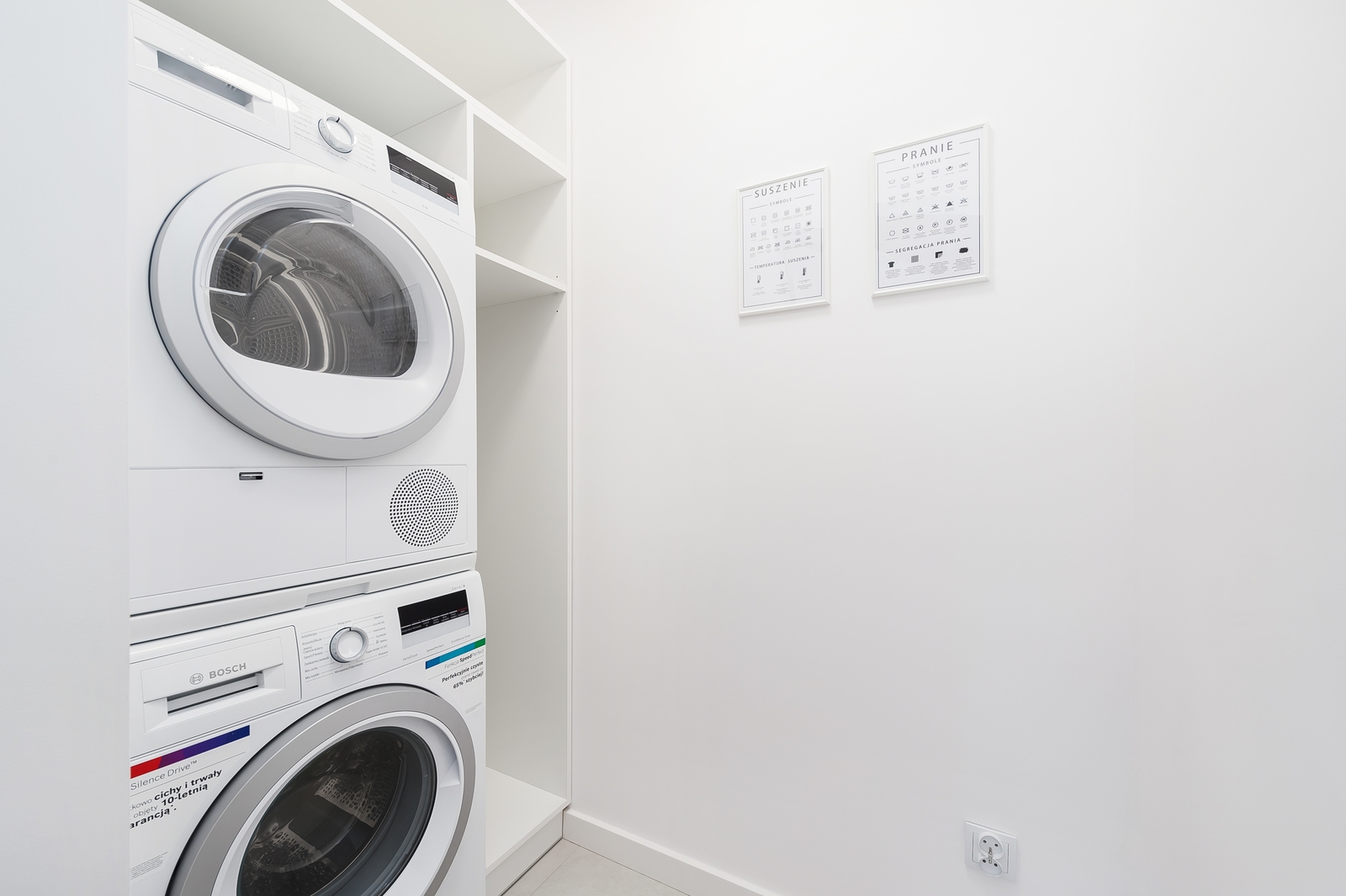 - Dla pary / małżeństwa / rodziny 2+1 – mieszkanie posiada pokój dzienny połączony z aneksem kuchennym, ale również dwie osobne sypialnie i pralnię.